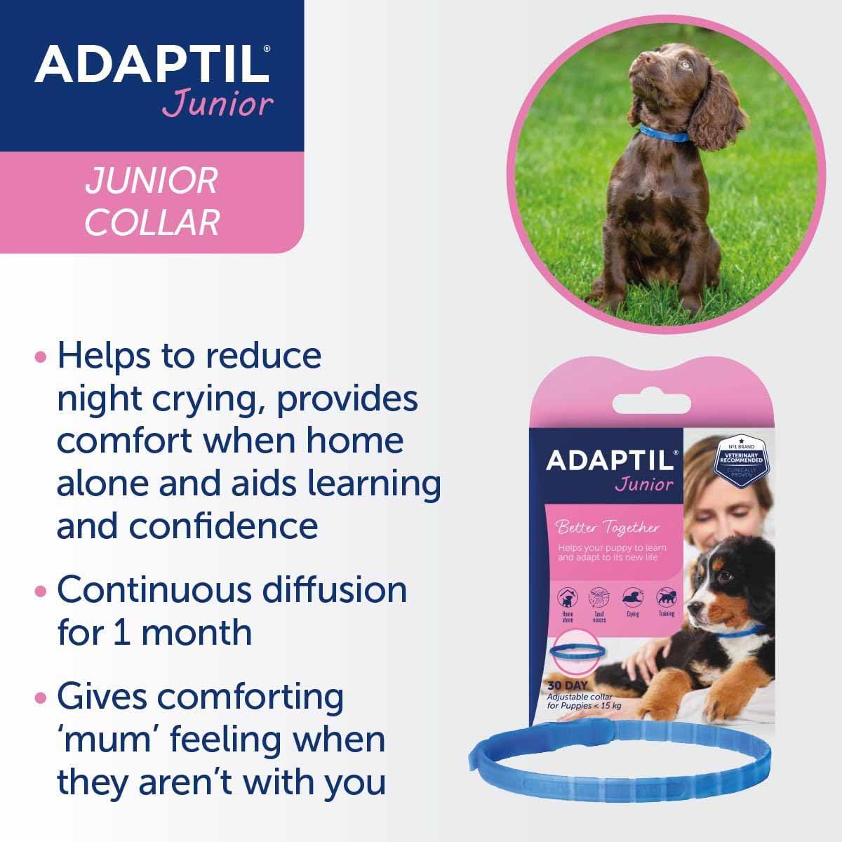- Calming as nature intended: ADAPTIL Junior sends 'appeasing messages' to help your puppy feel comforted and secure with your family, as they did with their mother, and learn better to develop into a balanced, confident adult dog