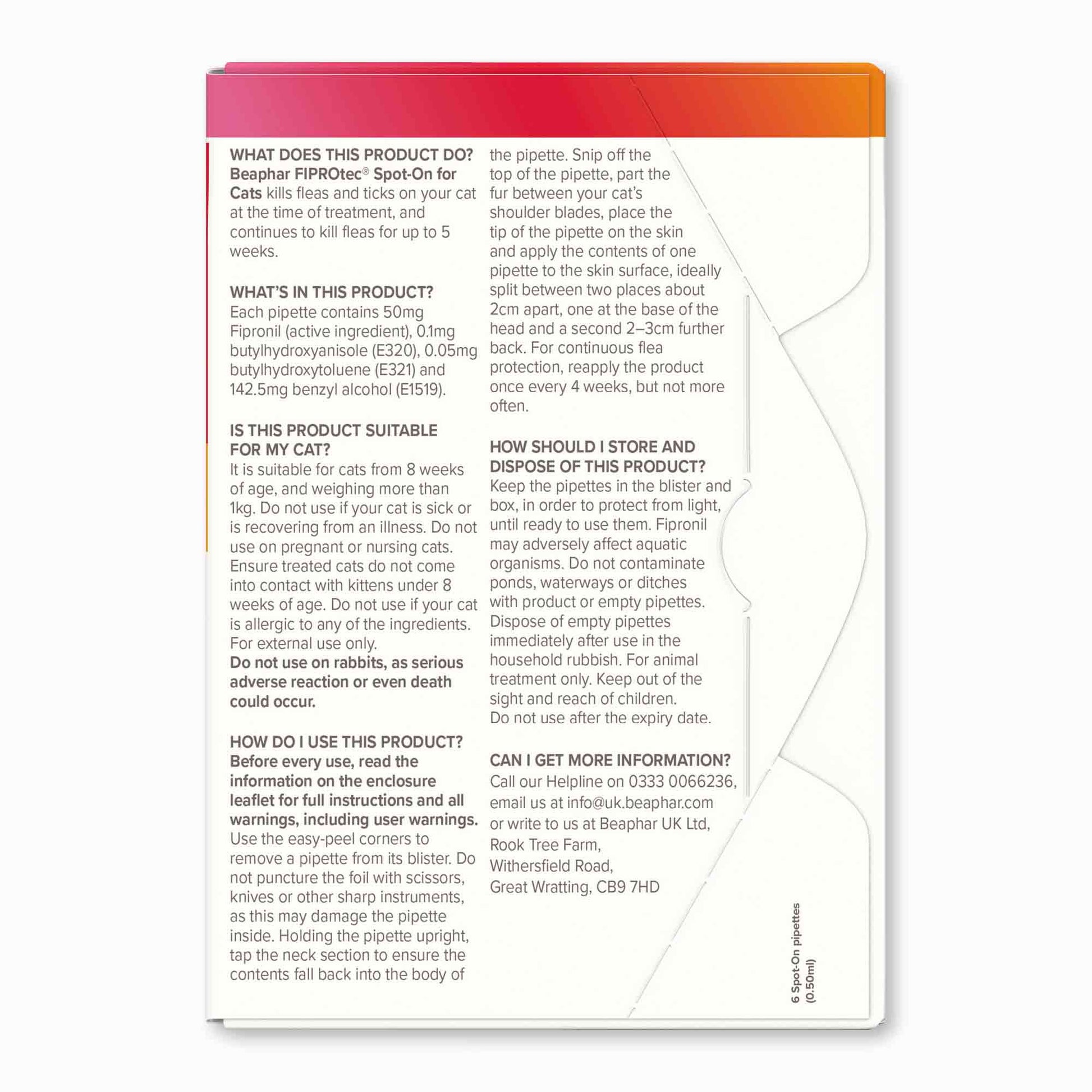 - KILLS FLEAS & TICKS: Beaphar FIPROtec® Spot-On for Cats is an effective and affordable veterinary medicine to control fleas and ticks on your cat, killing fleas within 24 hours and ticks within 48 hours