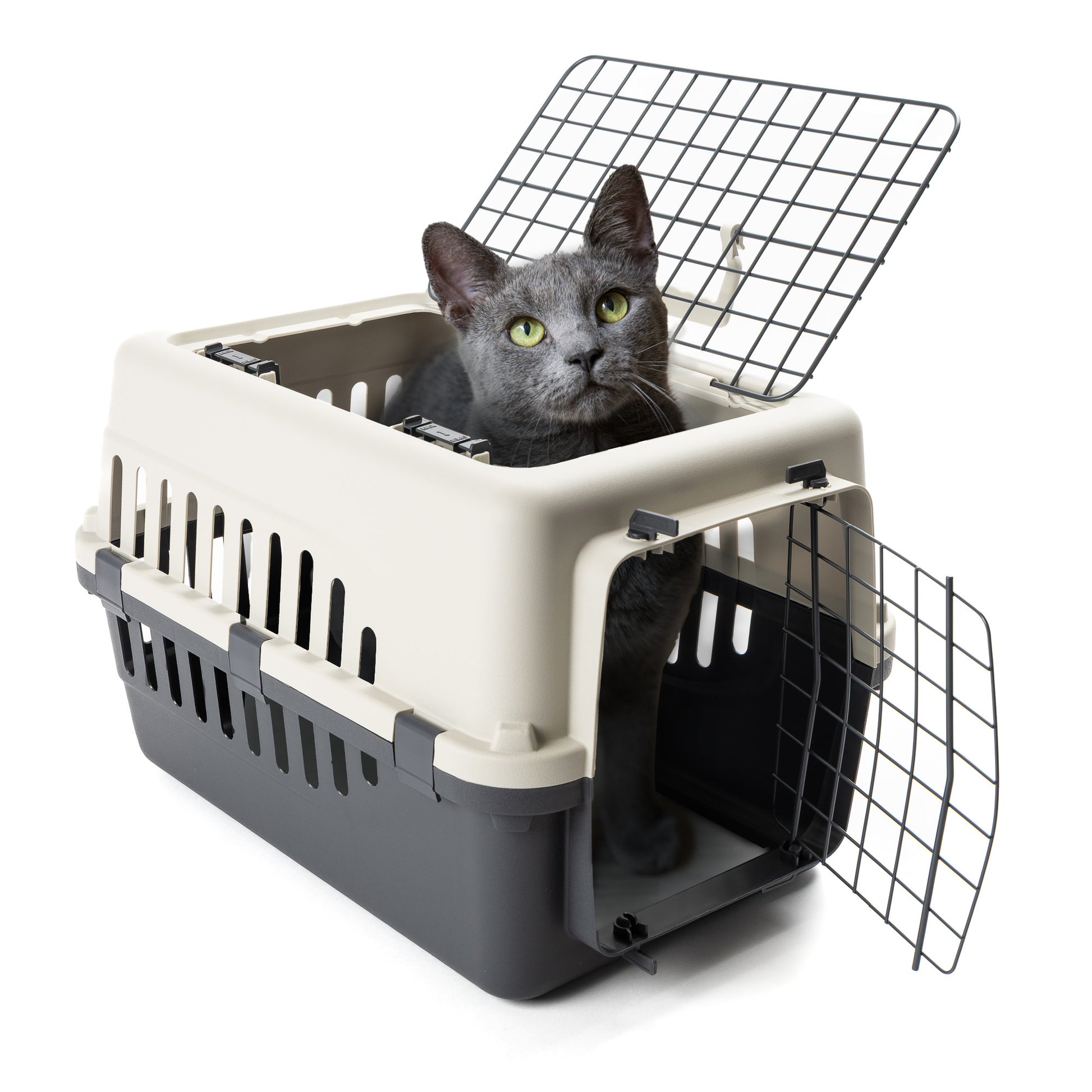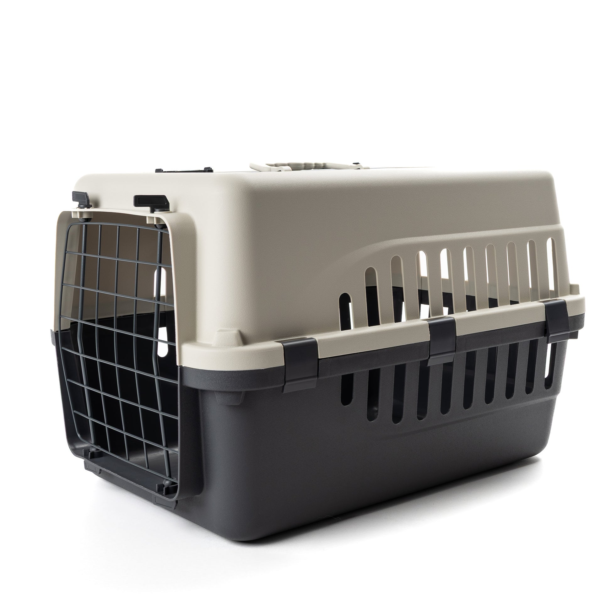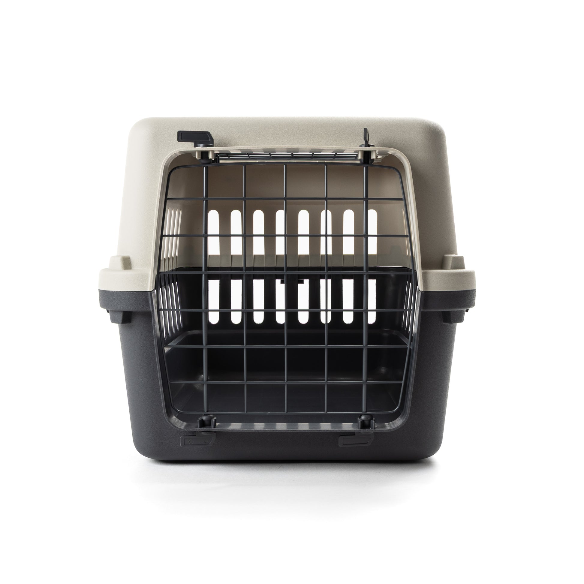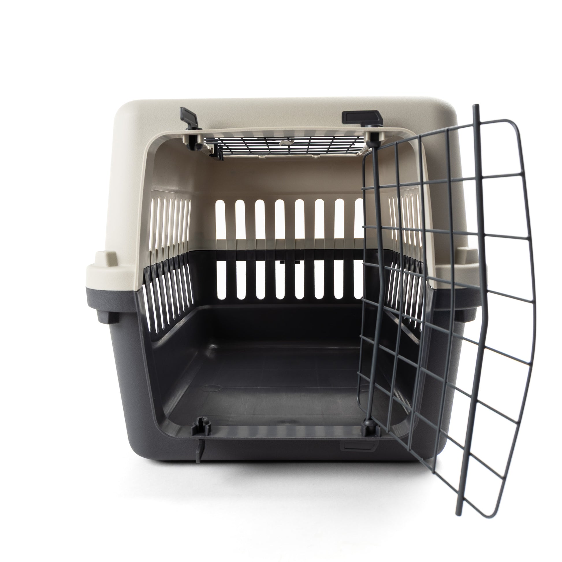 Manufactured from polypropylene with metal wire doors. Including a standard front opening door, this carrier also features a top opening hatch, which is ideal for removing pets when you don’t want them to run away.