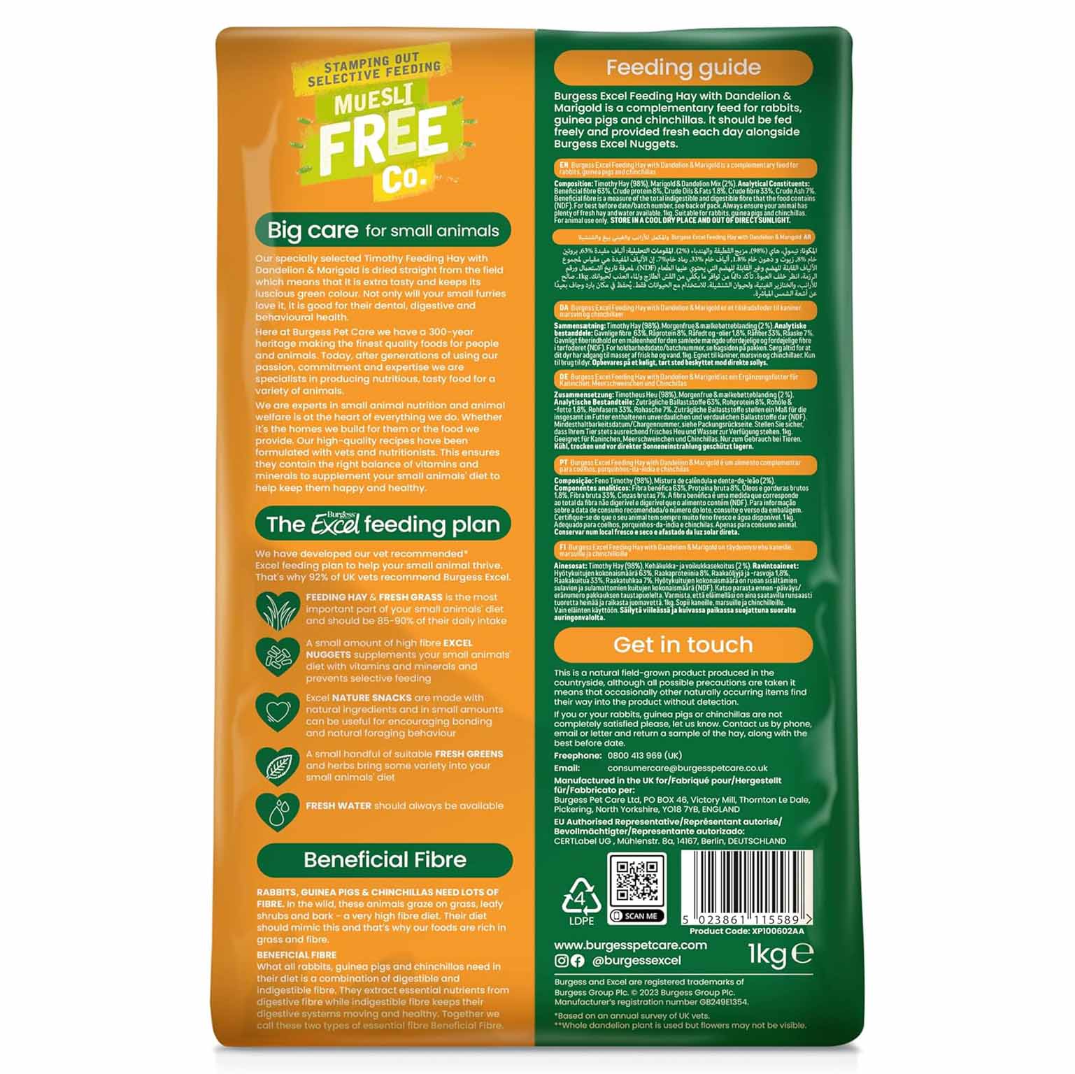 Burgess Excel Dandelion and Marigold Feeding Hay is a delicious, complementary food made from Timothy hay with dandelion and marigold. This sweet-smelling food is an excellent source of beneficial fibre that helps to maintain dental and digestive health.