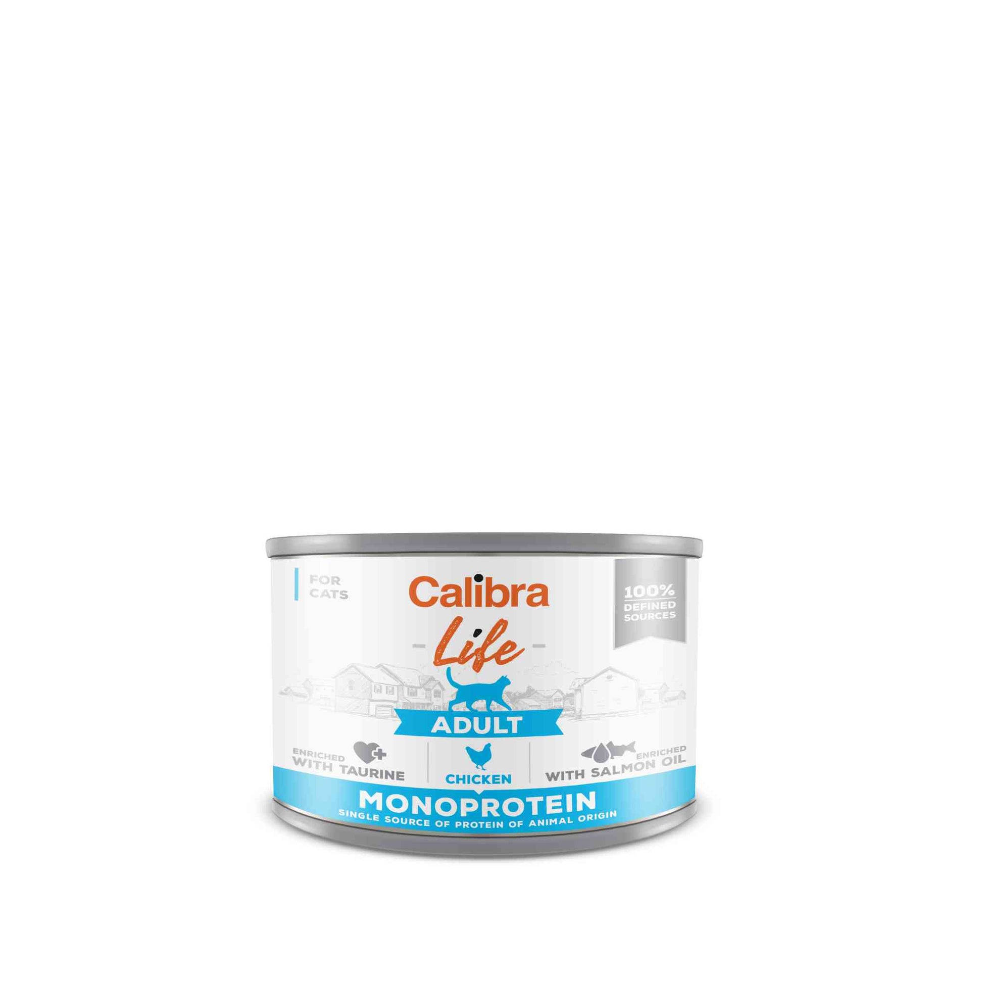 Calibra Cat Life Can Adult Chicken is a complete wet food developed for adult cats. This grain- and gluten-free pâté features a single protein source – chicken – and is made using a limited number of ingredients for high digestibility. The recipe includes only 100% defined ingredients of premium quality, ensuring balanced nutrition and great taste.