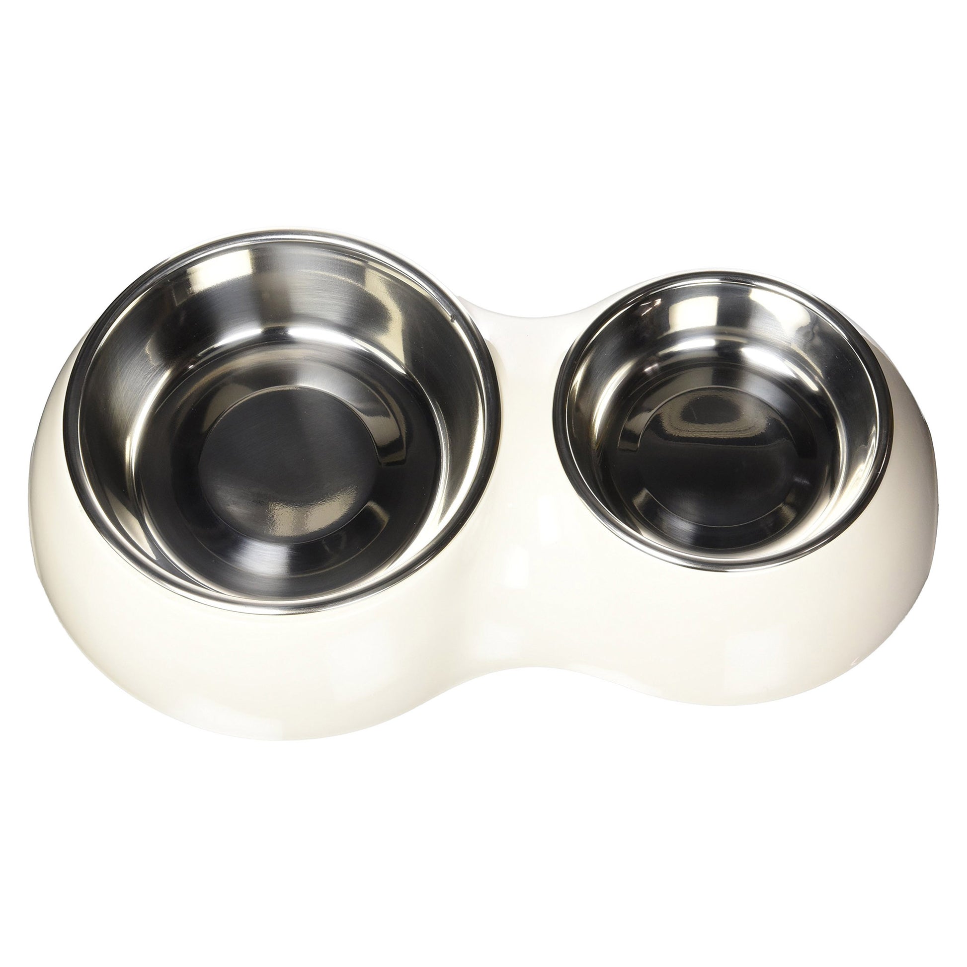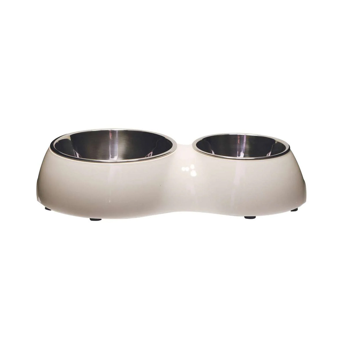 Catit Stainless Steel Double Diner Bowl - White - 2 x 9.5cm