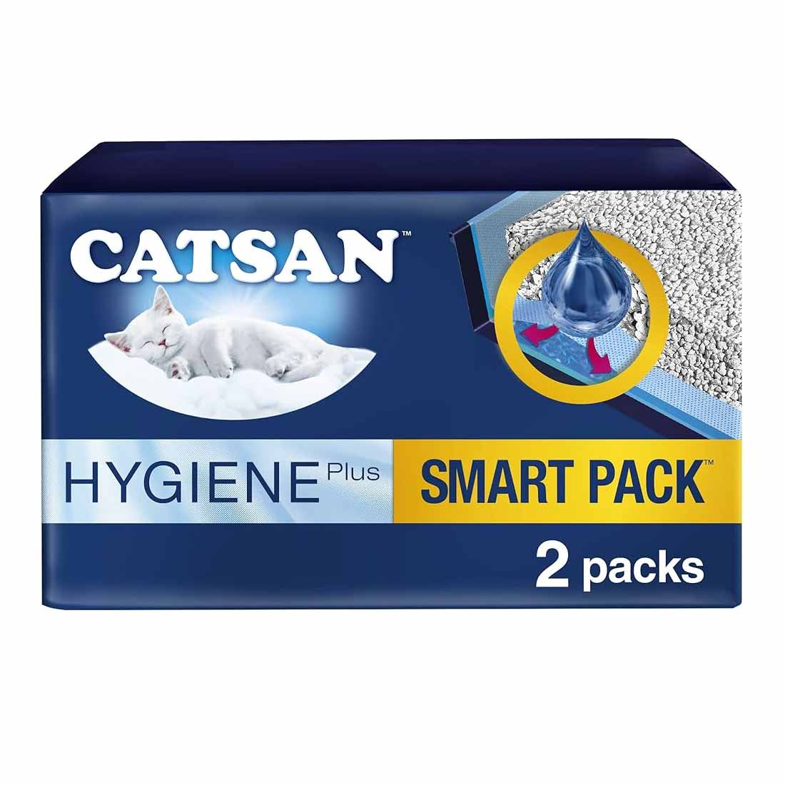 The pack contains 2 liners and 4 litres of Catsan Hygiene Litter, CATSAN Smart Pack will be inserted and disposed of without any dust and due to the liner there is no need anymore to scrub and to wash the litter tray afterwards.