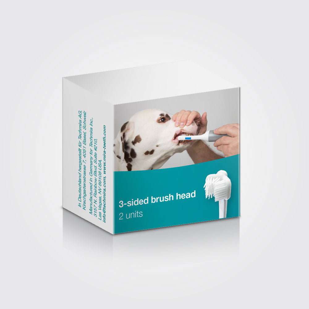 Cleany Teeth Replacement 3-sided brush heads are replacement brush heads for the Cleany Teeth Ultrasound Toothbrush. The 3-sided variant is ideally suited for medium to large breed dogs with larger teeth.