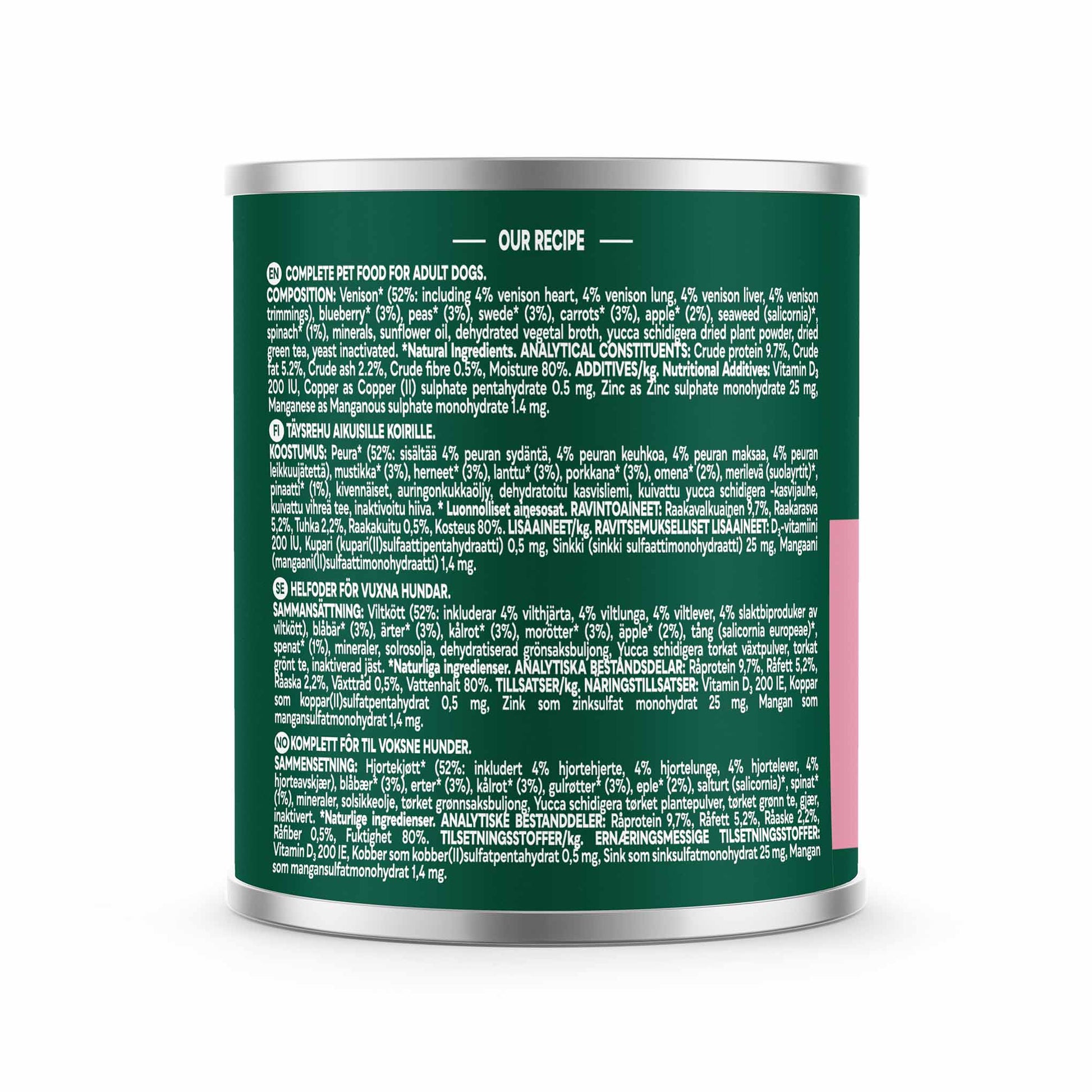 Venison 52% inc. 4% heart, 4% lung, 4% liver, 4% trimmings