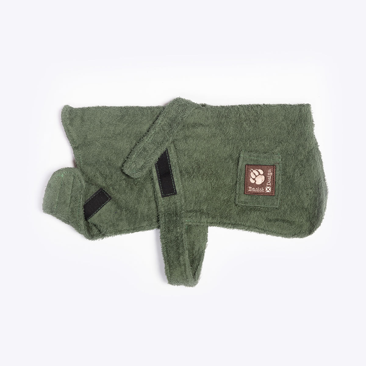 Ideal for after wet and muddy walks or after bath time, this Danish Design Towelling Green Dog Robe is the ultimate drying coat and helps to avoid wet and muddy shake off.