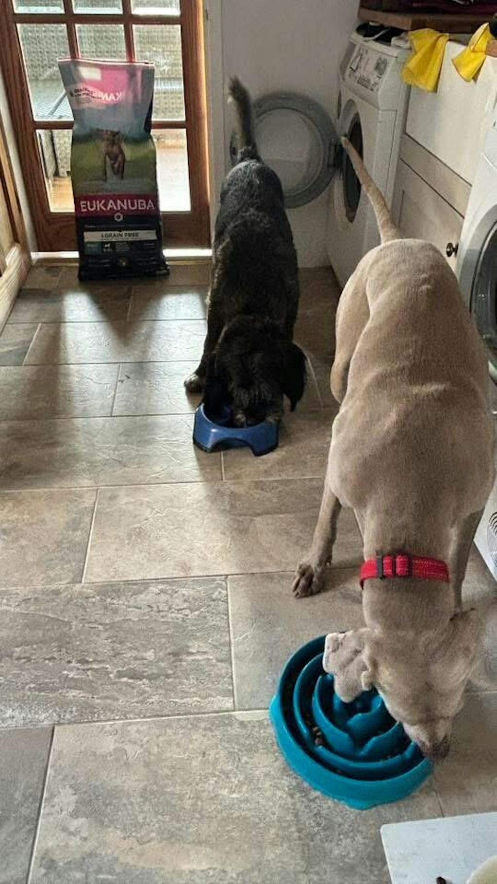 Feeding Guide Every dog is unique and feeding amounts will vary with age, activity and metabolism. Please use this chart as an initial guide and adjust amounts accordingly. Feed at least twice daily and always provide fresh, clean water.Dog Weight (kg) Grams Per Day 5 80-90g 10 130-145g 20 210-230g 30 275-305g 40 330-370g 60 435-485g
