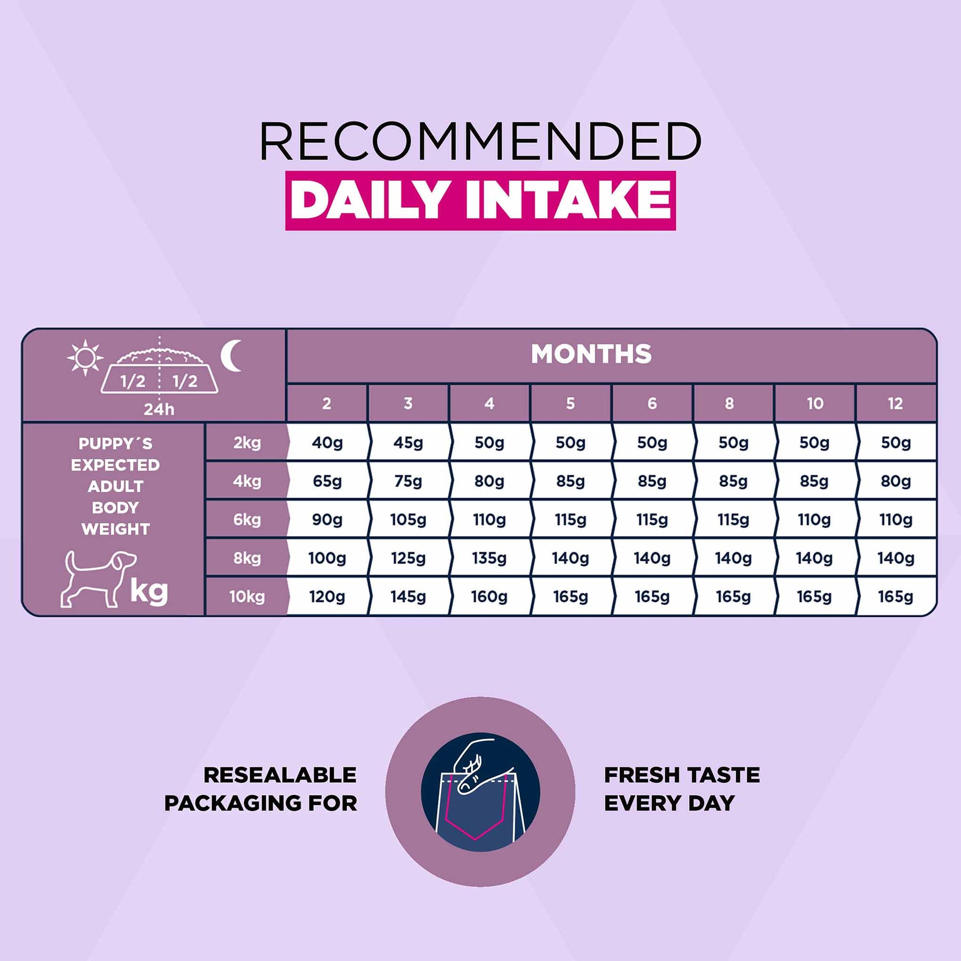 Suitable for: Small breed Puppies aged up to 12 months weighing less than 10kg at adult weight.