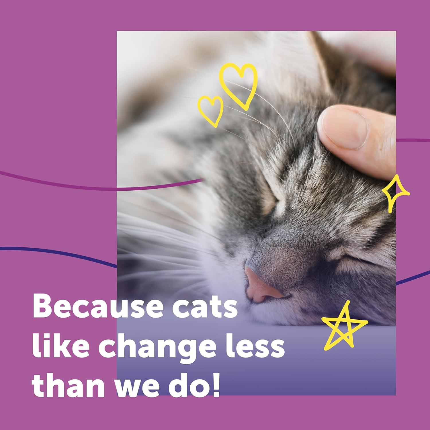 Helps to reduce the common signs of feline stress (scratching, urine spraying and hiding)