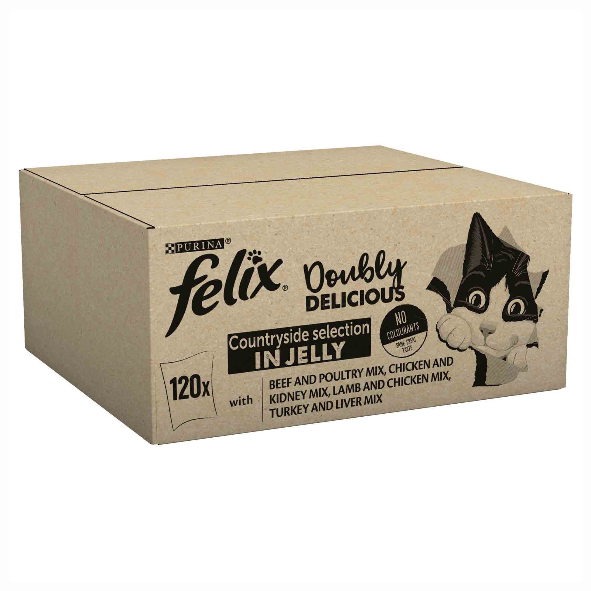Felix Doubly Delicious Adult Wet Cat Food in Jelly - Countryside Selection - 120x85g Pouches