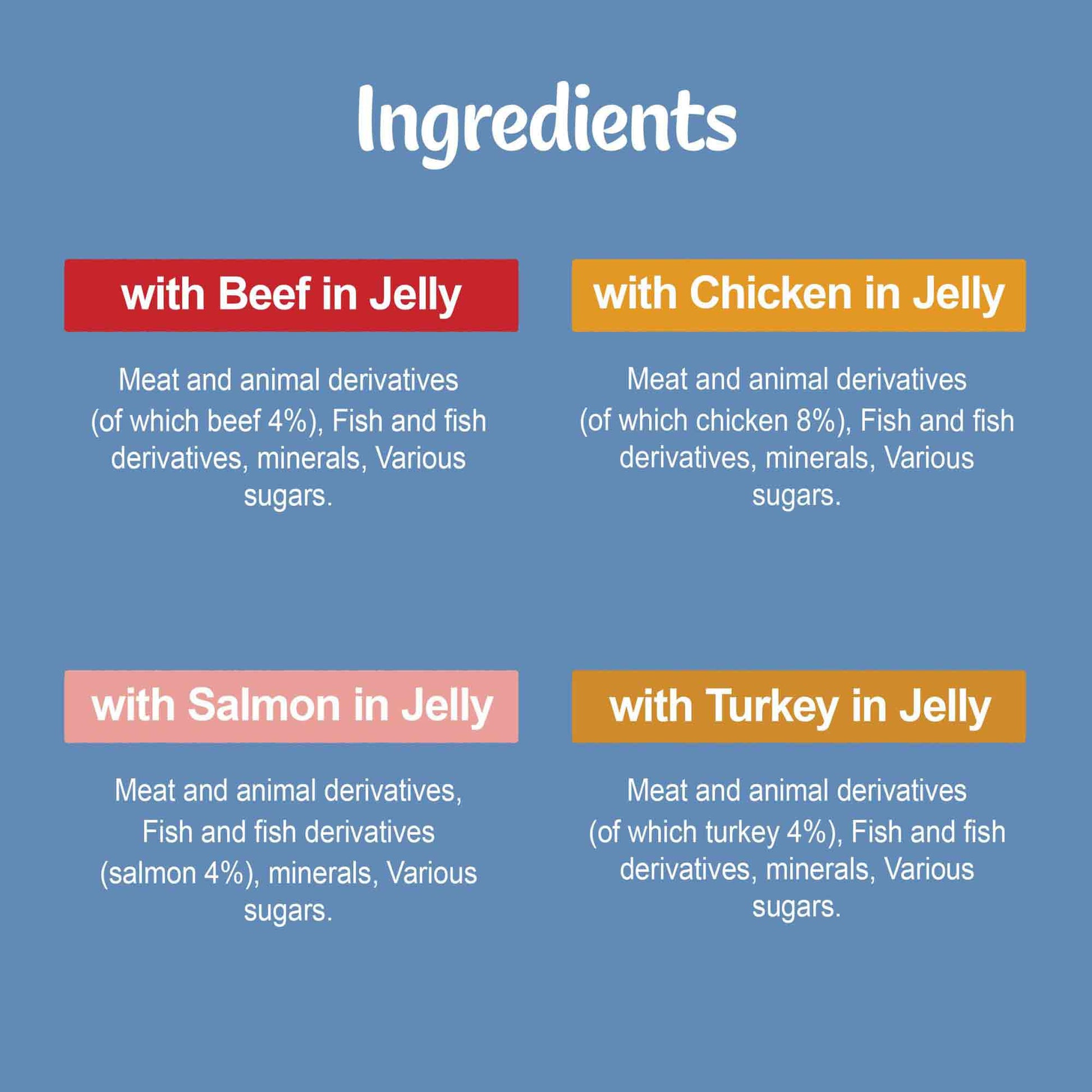 Clever cats know what they want, especially at mealtimes! That's why each recipe in this Felix Senior range of irresistible meals is made with quality ingredients and packed with deliciously tender pieces in succulent jelly for a tasy meal your cat will love! Felix Senior is available in a wide range of recipes in a tasy jelly to satisfy your cat's love of variety every day. These meals are specially designed for cats aged 7+ with the right combination of proteins, balanced minerals and vitamins including antioxidants to help keep your cat full of vitality!
