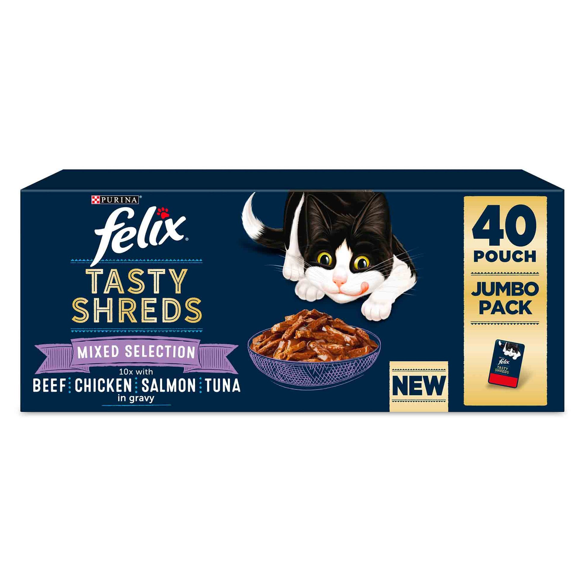 Felix Tasty Shreds Adult Wet Cat Food in Gravy - Mixed - 40x80g Pouches