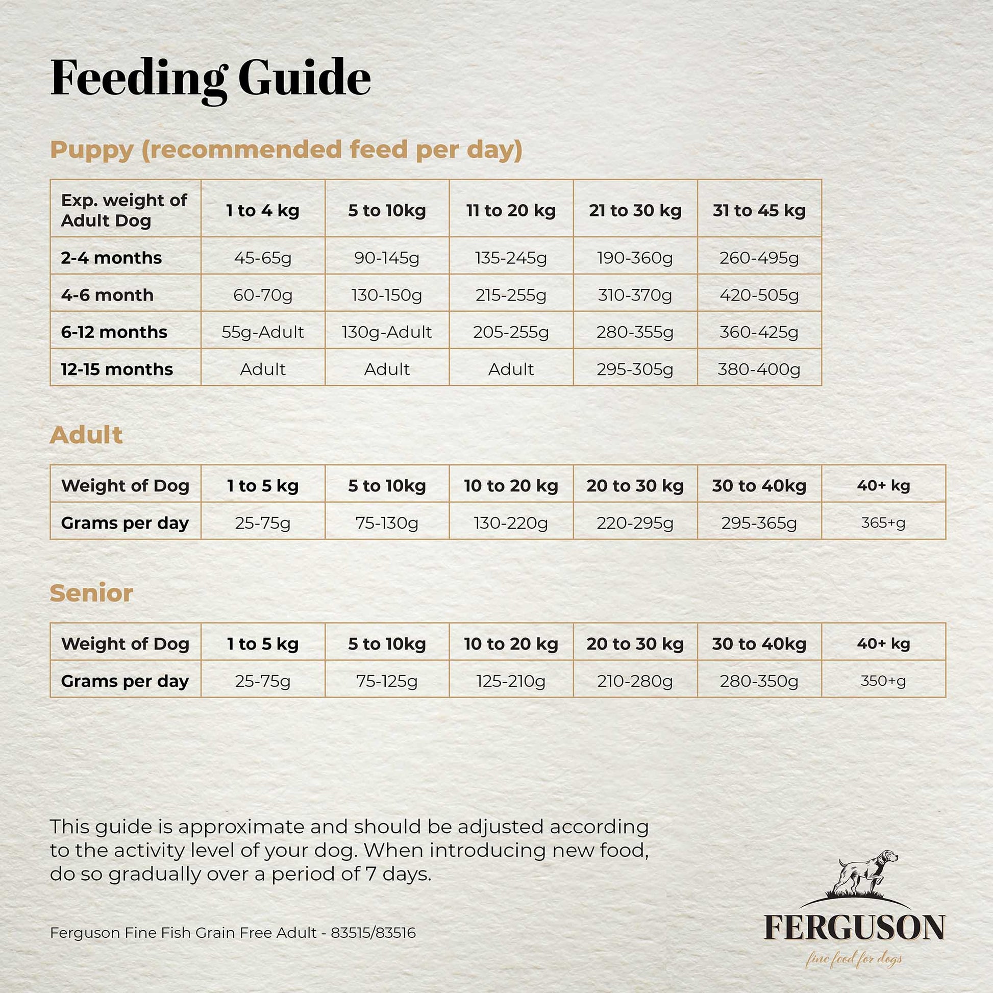 From the first meal itself my dog Bruno loved it! Usually he is fussy when we introduce anything new but with Ferguson fine fish he liked it from first meal