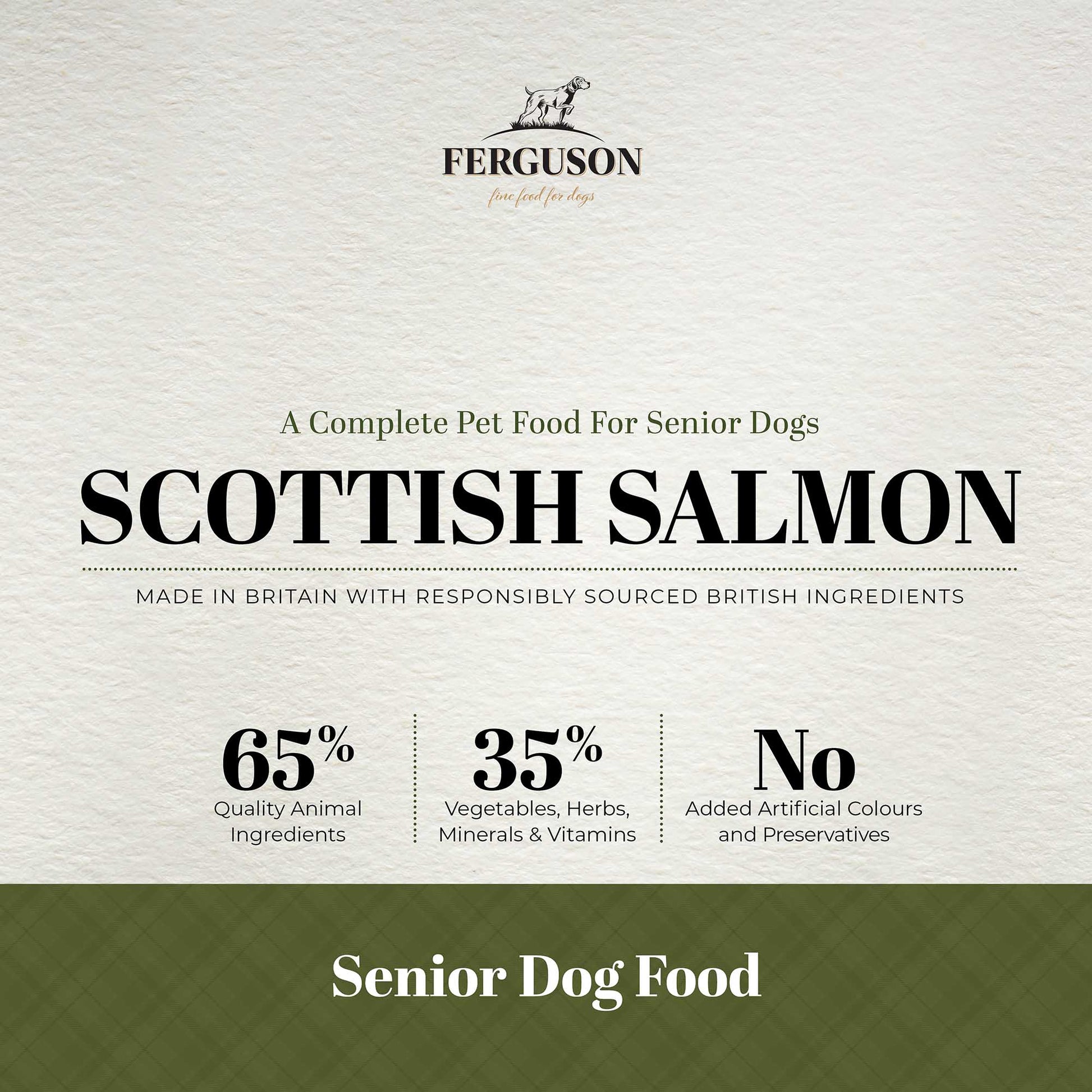 You can feel good about feeding your dog Ferguson Scottish Salmon Senior Dry Dog Food, because it's made with the same thought and care that you would put into your own food.