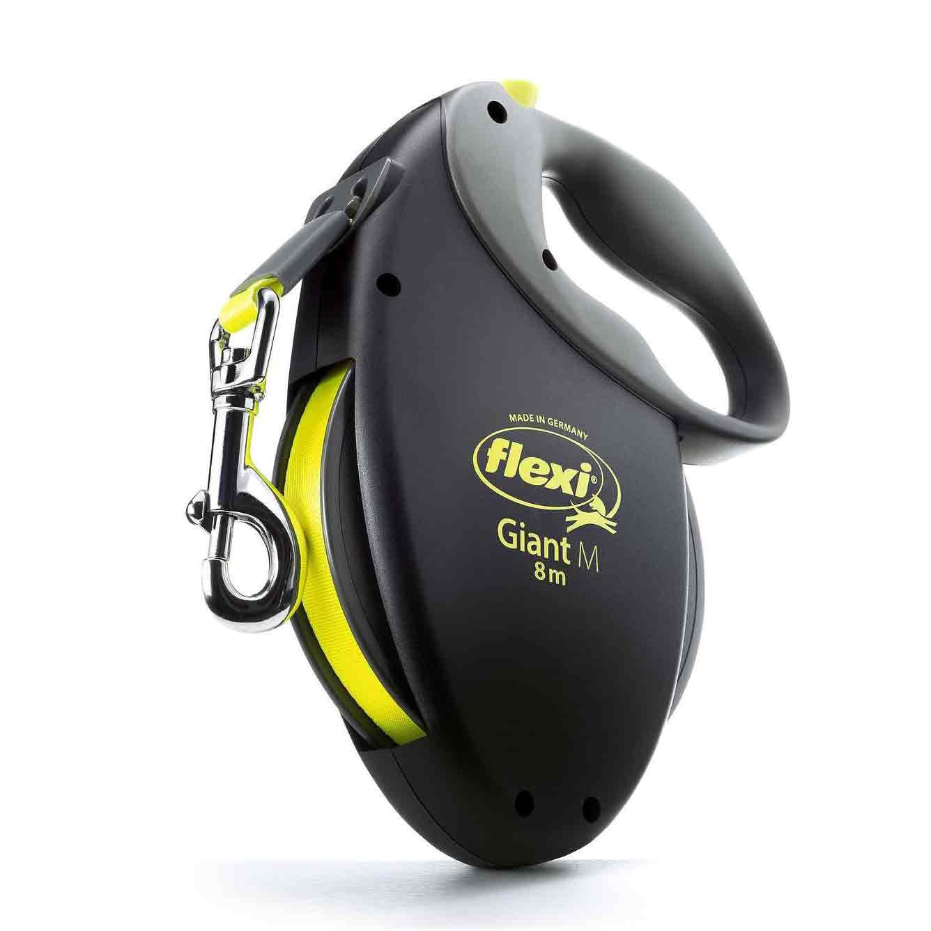 This Flexi Giant Neon Tape Lead is a retractable tape lead that gives you and your dog a generous 8m of length.