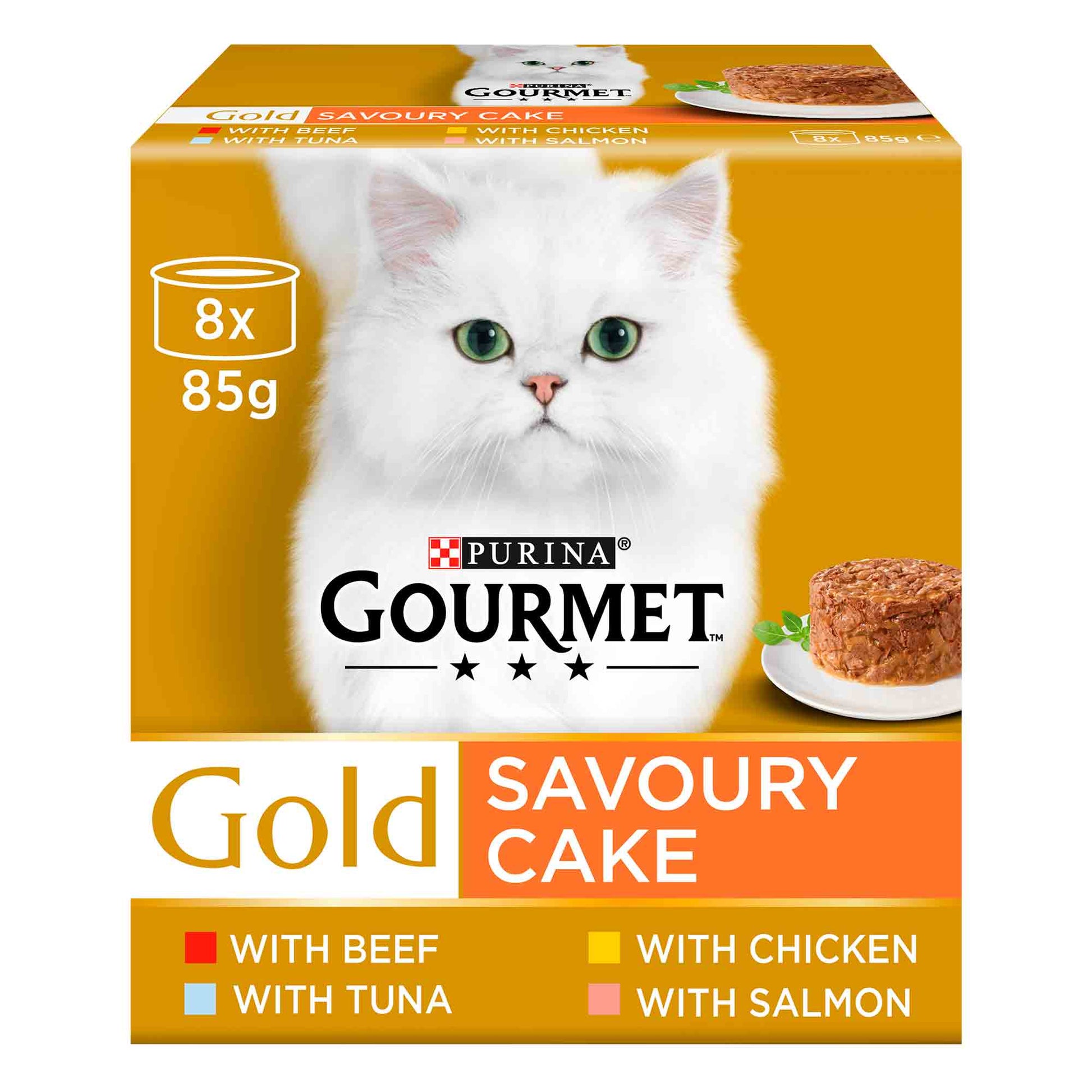 Gourmet Gold Savoury Cake Adult Wet Cat Food - Meat and Fish - 8x85g Cans