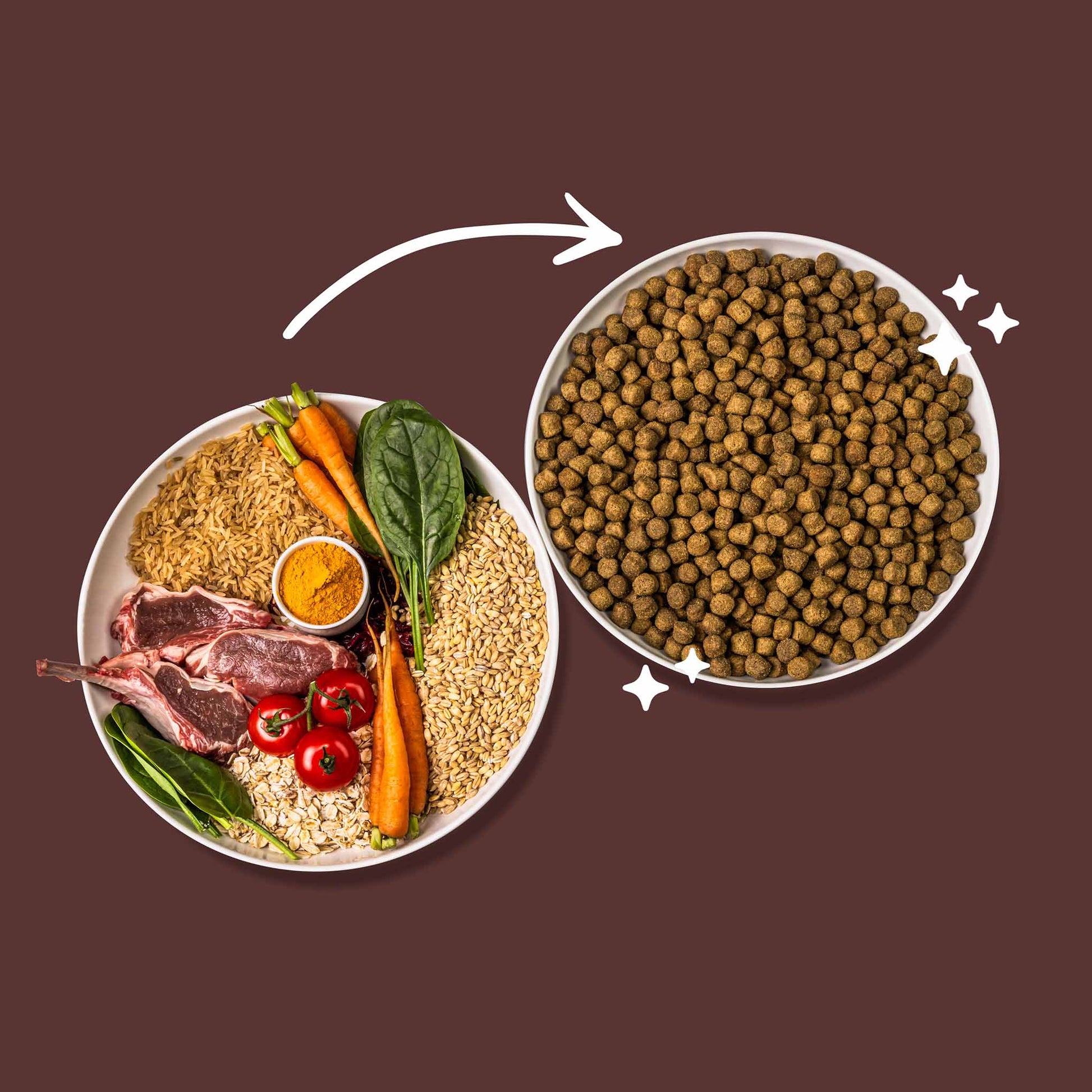 Composition: Lamb 41% (Freshly Prepared Lamb 19%, Dried Lamb 19%, Lamb Fat 2%, Lamb Stock 1%) Whole Barley 26%, Whole Oats 15%, Whole Brown Rice 13%.