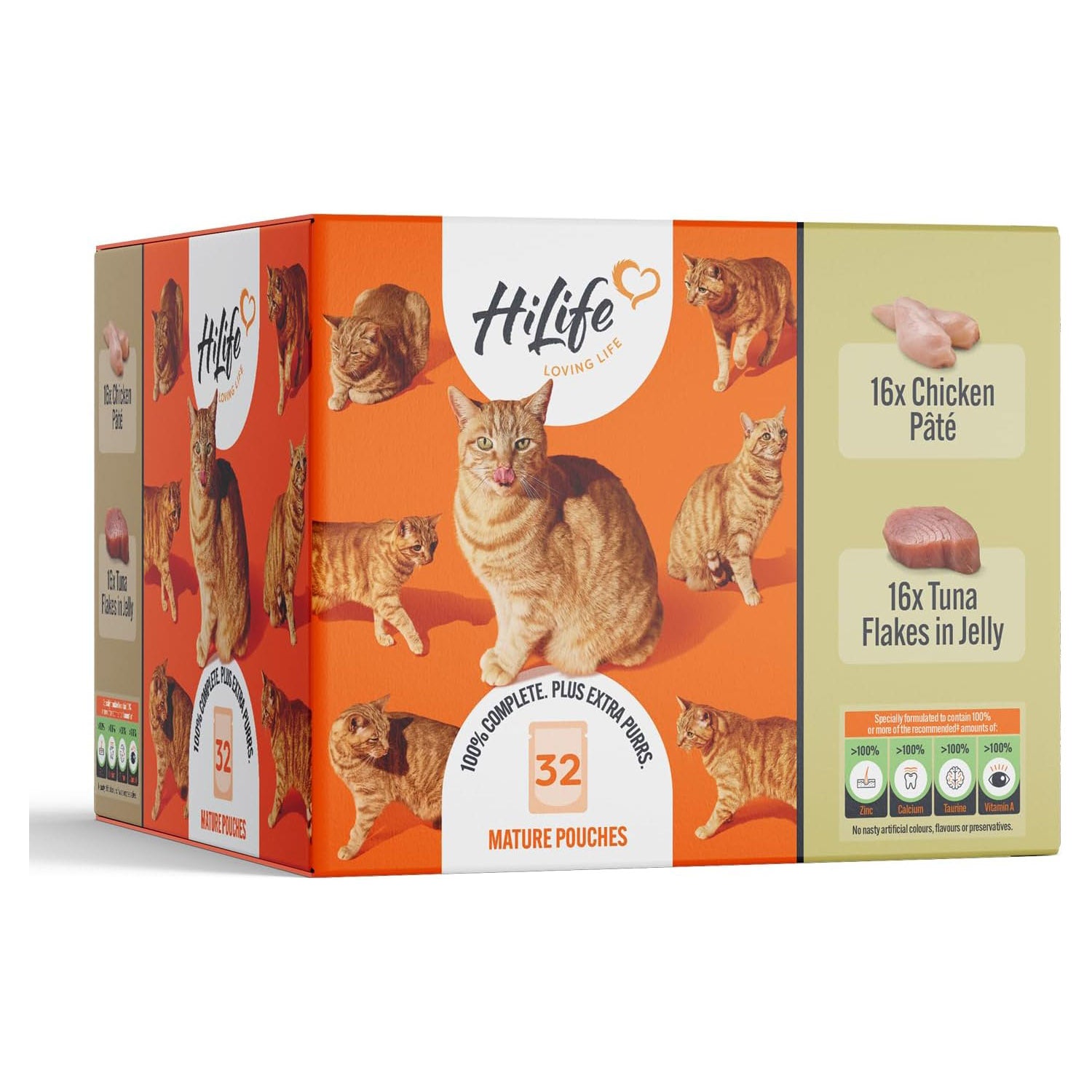 HiLife Mature Wet Cat Food - Chicken Pate & Tuna in Jelly - 32x70g Pouches