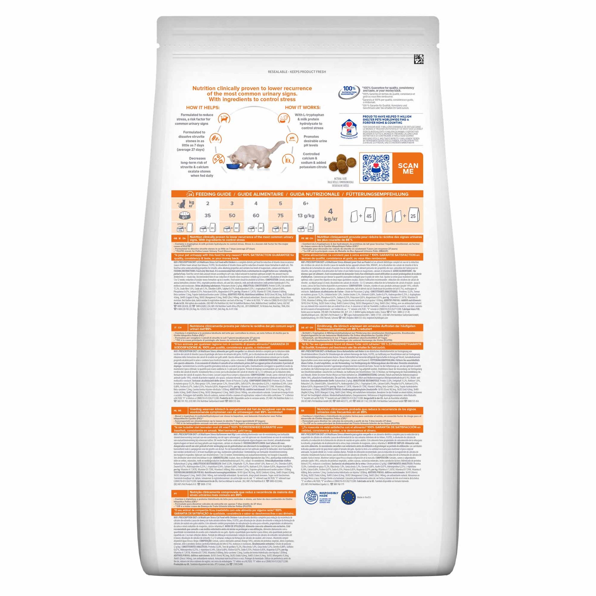 Hill's nutritionists & veterinarians developed Prescription Diet c/d Multicare Stress dietetic nutrition specially formulated to support a cat's urinary health while also managing stress. In fact, c/d Multicare is clinically tested nutrition to lower the recurrence of most common urinary signs by 89%. This dry food is made with chicken and has an irresistible taste that your cat will love.
