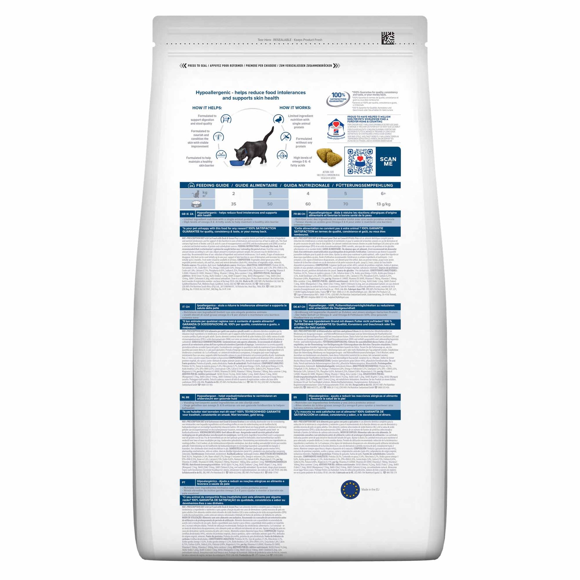 There can be a variety of reasons for a cat's itchy skin condition, including sensitivities to food. The good news is, most pets with these skin conditions can benefit simply by eating the right food. Hill's nutritionists & veterinarians developed Prescription Diet d/d dietetic pet food specially formulated to support cats with food sensitivities. In fact, d/d is clinically proven nutrition to help avoid adverse food reactions.