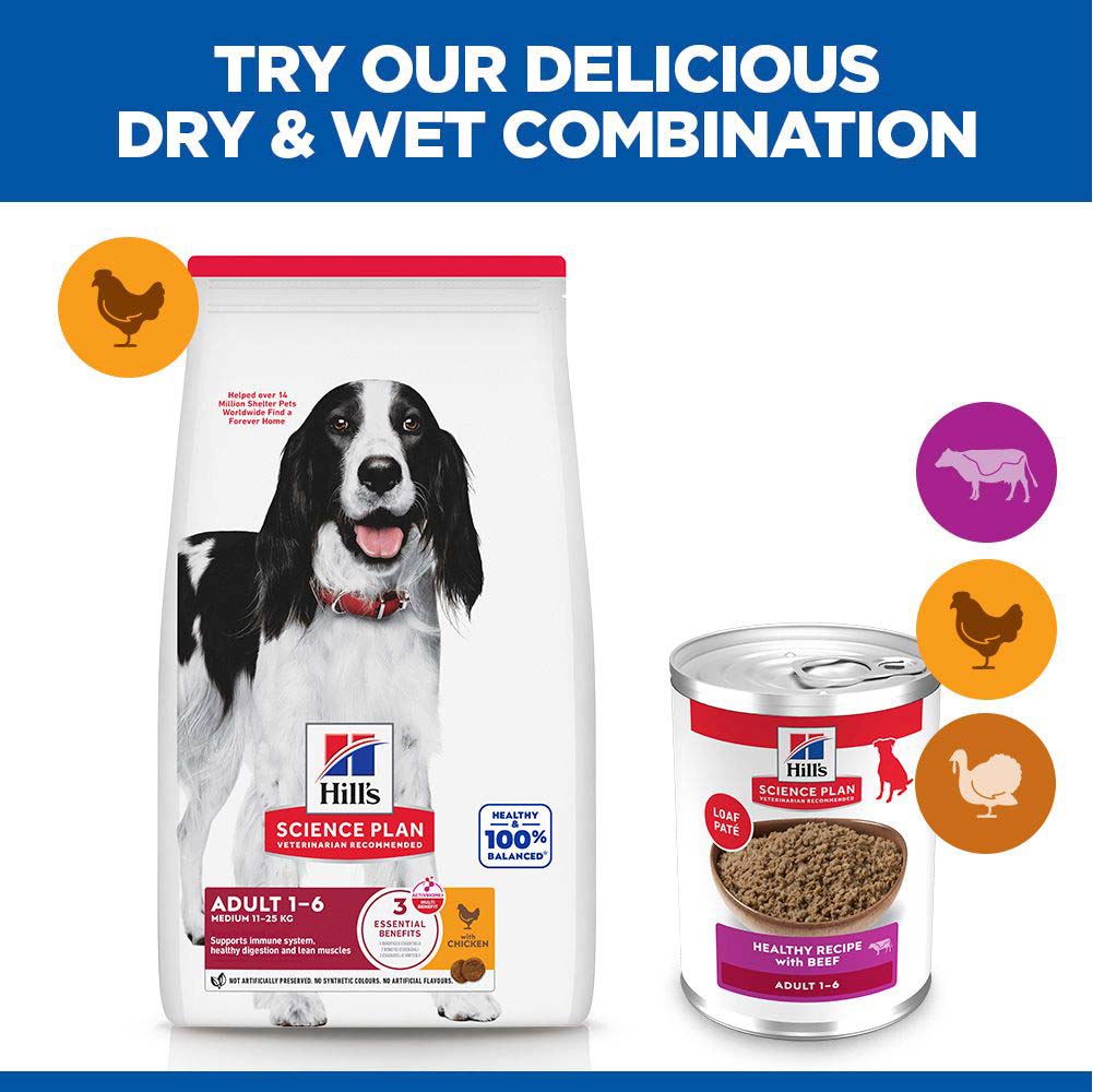 Your dog will love the taste of Hills Science Plan Adult Wet Dog Food with Beef, with its soft, smooth texture. It has the perfect balance of taste and nutrition for your dog. Precisely balanced to deliver the appropriate amount of energy to support ideal body weight in adult dogs aged 1 – 6 years.