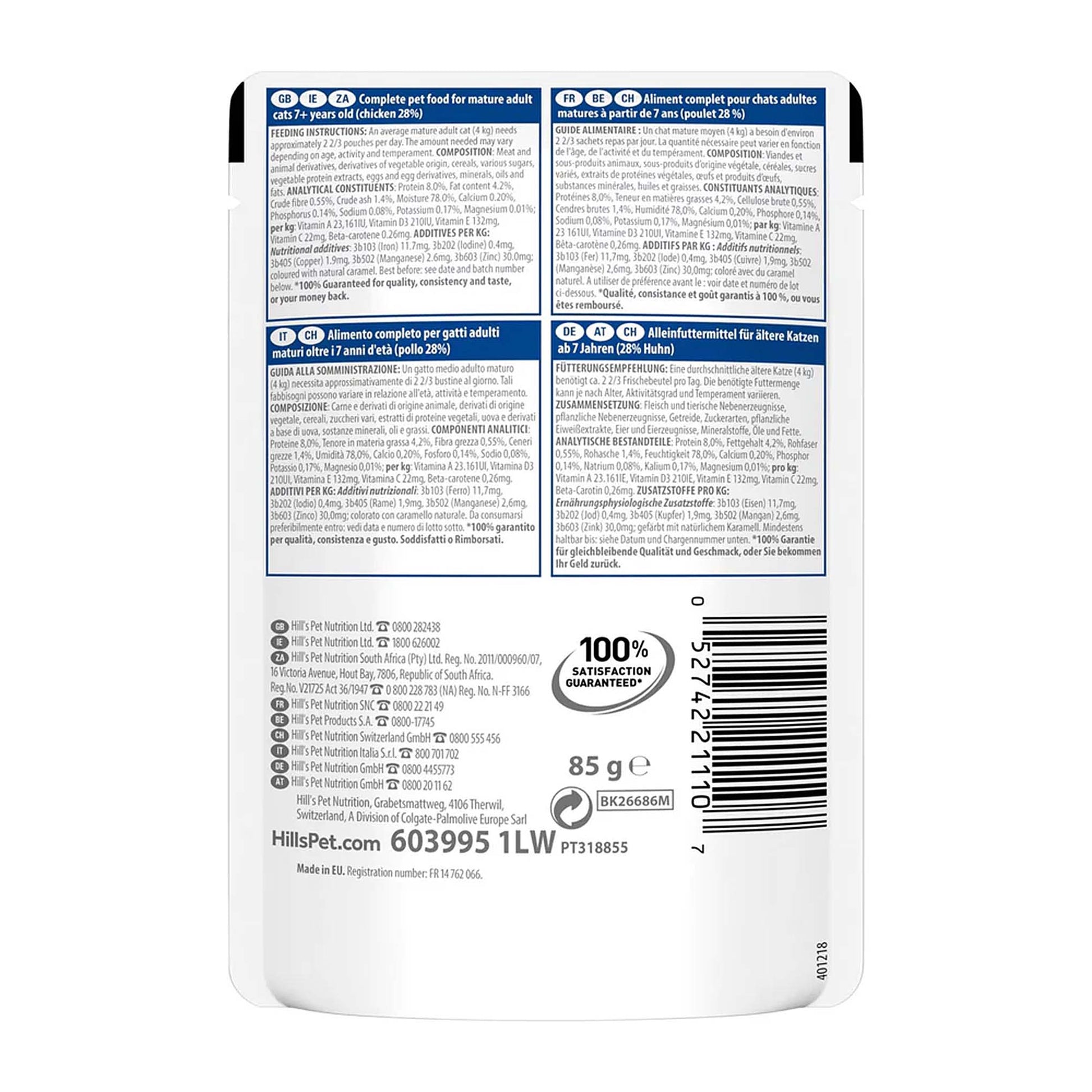 Hills Science Plan Mature 7+ Wet Cat Food in Gravy - Chicken - 12 x 85g Pouch