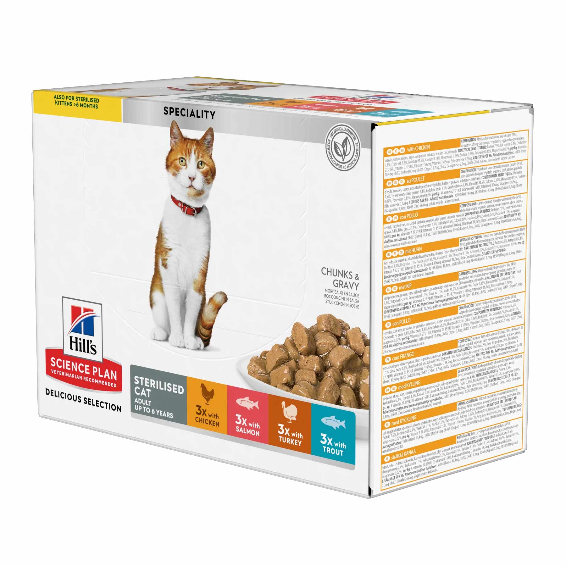 Hills Science Plan Sterilised Adult Wet Cat Food in Gravy - Multipack - 12x85g Pouches