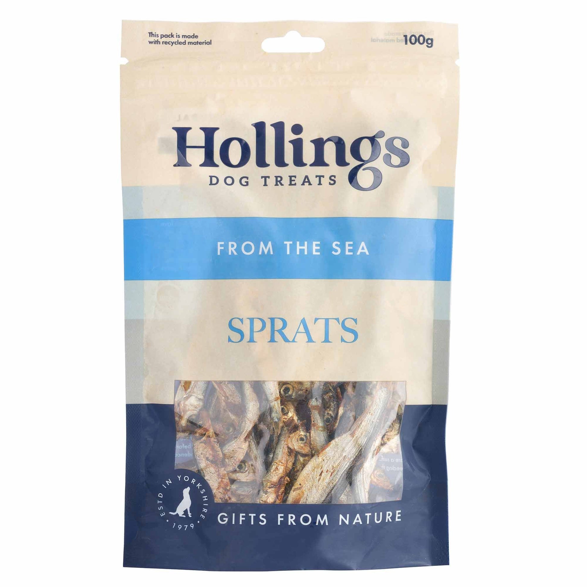 Hollings Sprats Dog Treats are made with 100% fresh fish and gently air dried for a 100% natural, highly digestible treat that dogs love. Great to add to your dog’s dinner or to use as a natural treat or reward.