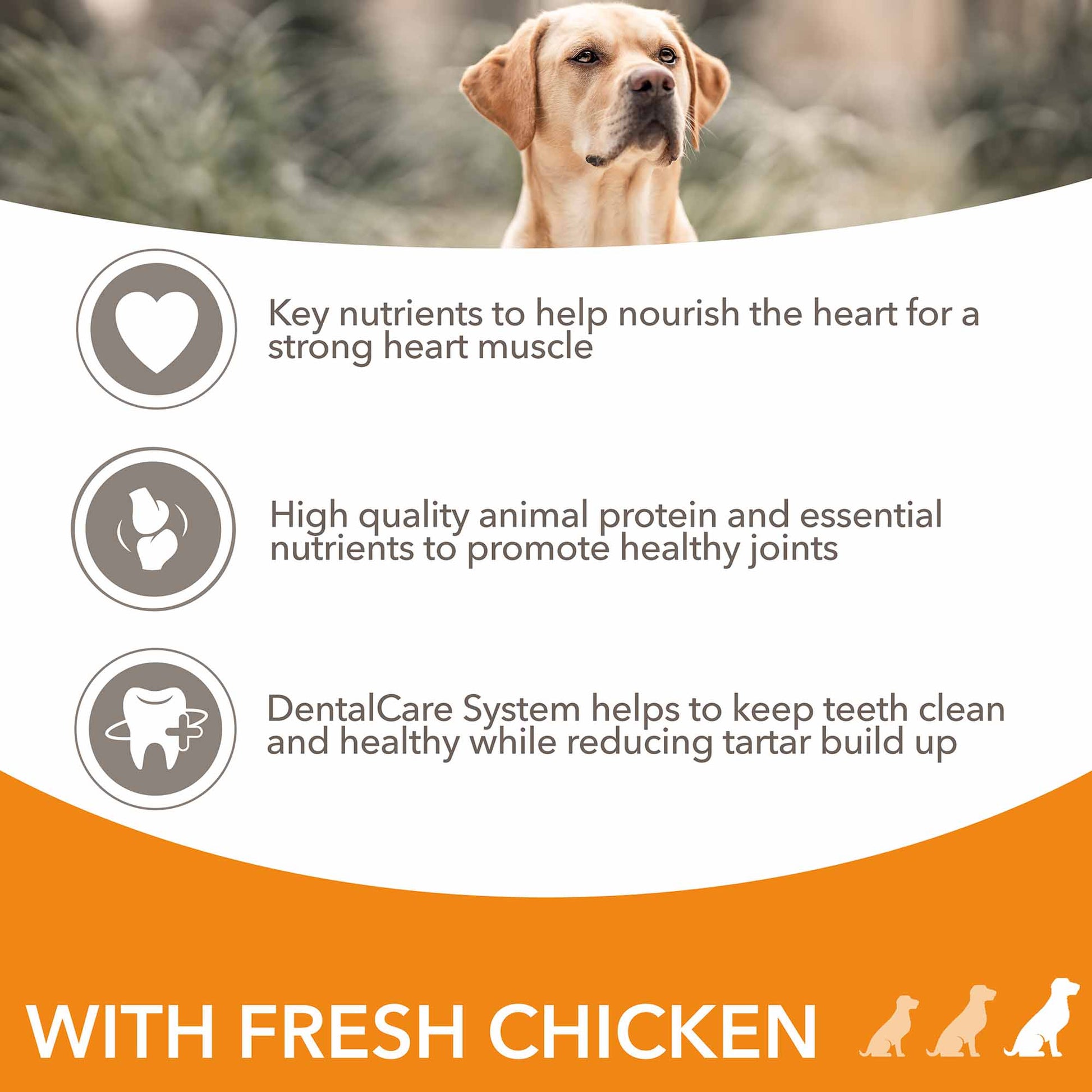 Nourishing your senior dogs natural needs by feeding them advanced nutrition with 78% animal protein* that they will truly enjoy. IAMS Advanced Nutrition dog dry food with fresh chicken large breed 7+ Years incorporates a DentalCare System, that actively contributes to maintaining clean and healthy teeth while effectively reducing the accumulation of tartar.