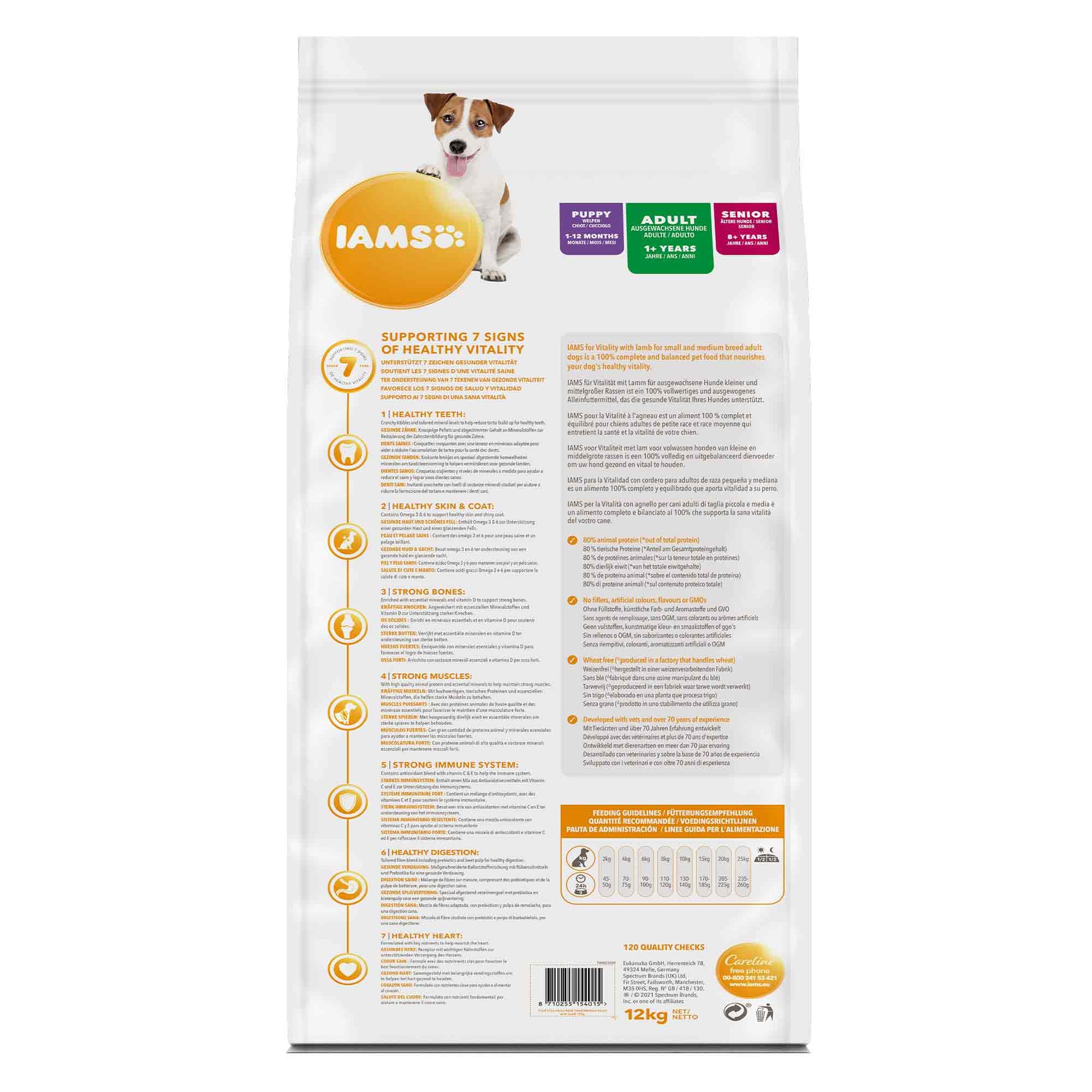 IAMS for Vitality small and medium breed adult dog food is 100% complete and balanced expert nutrition to help support your dog’s 7 signs of healthy vitality. All of this packed into a tasty recipe with 80% animal protein (out of total protein) for your pet to enjoy every day.