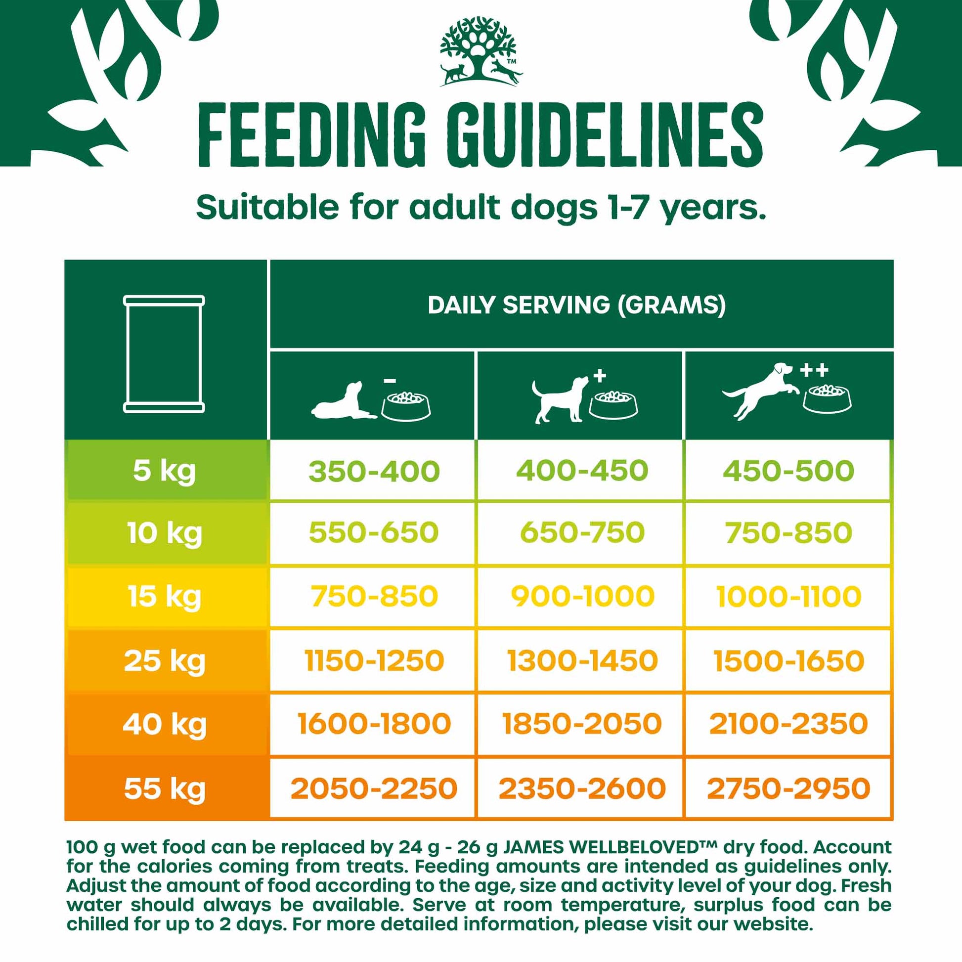 James Wellbeloved Adult Dog Wet Food is made using a handful of ingredients from nature, one source of animal protein, combined with all the vitamins and minerals your dog needs and all the great taste it deserves. For added peace of mind, it’s naturally hypoallergenic so less likely to cause an adverse food reaction and you will never see any added artificial colours, flavours or preservatives. Not now, not ever.