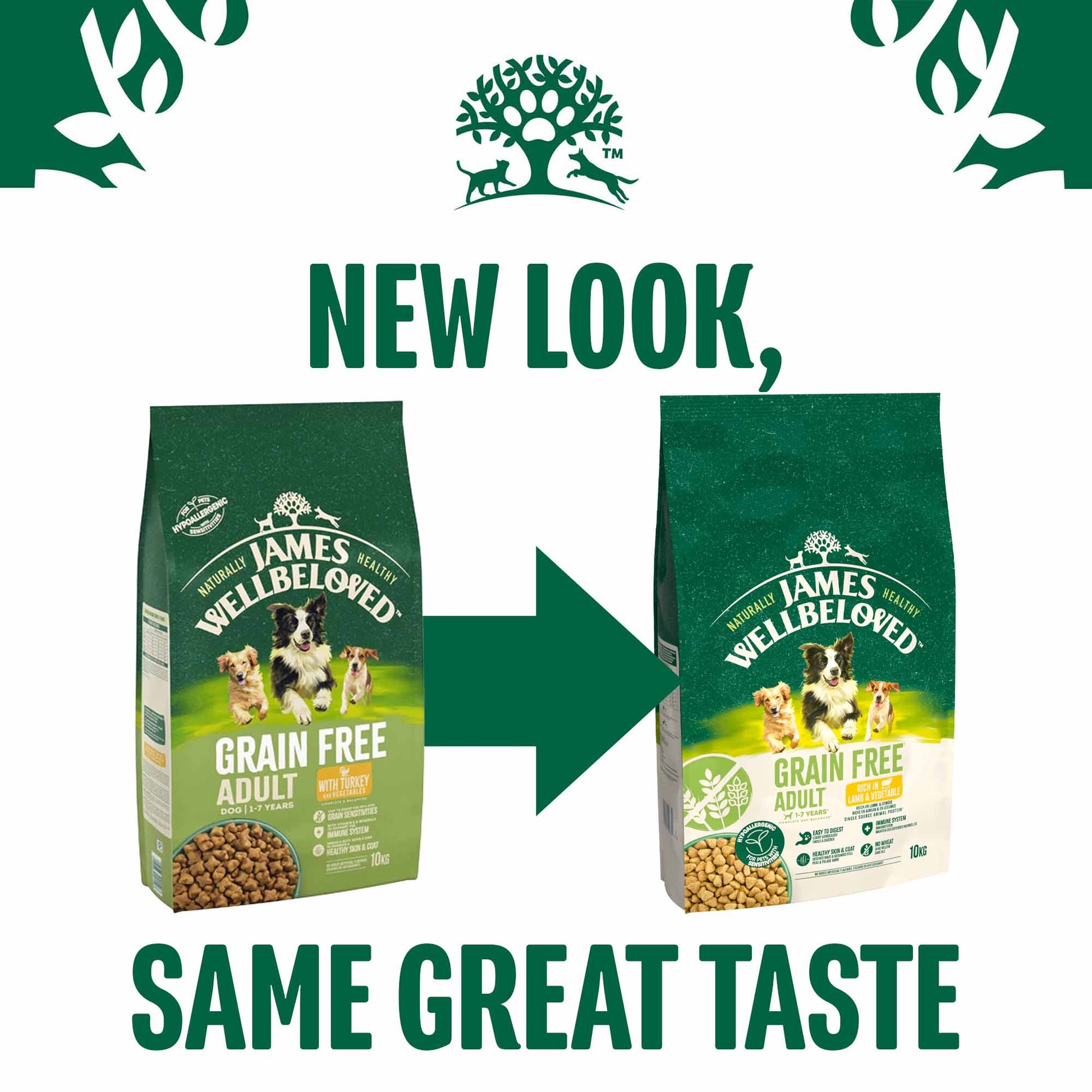 James Wellbeloved Grain Free Adult Dry Dog Food is crafted with nature's nourishing ingredients and combined with flavourful lamb to create highly digestible, tasty dry dog food. Our recipe is also made without grains for dogs with grain sensitivity. Best of all, you can be sure they're enjoying a balanced diet. One that not only tastes good but does them a world of good too.