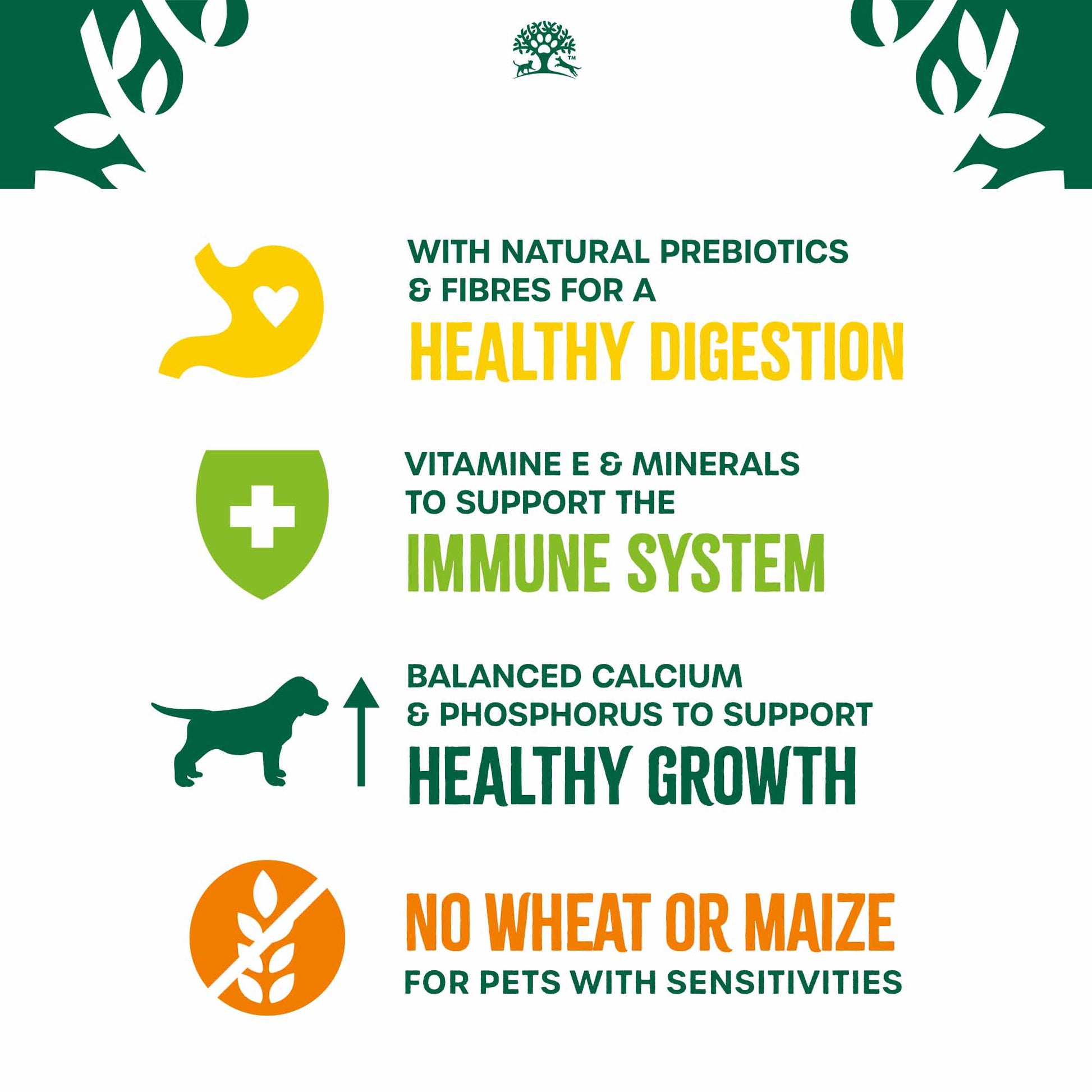 - With natural prebiotics & fibres for a growing dog's healthy digestion