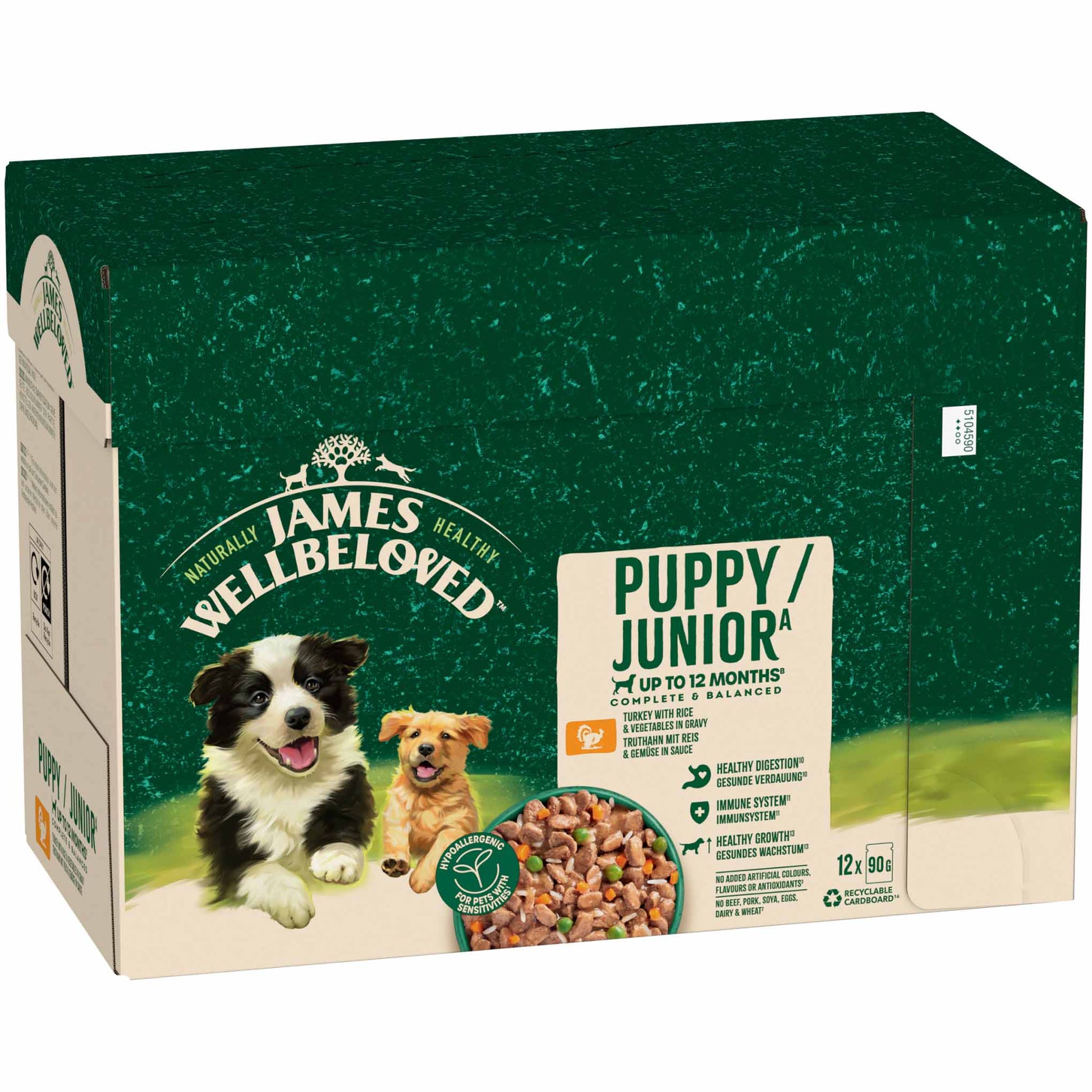 James Wellbeloved Puppy Wet Dog Food in Gravy - Turkey & Rice - 12x90g Pouches
