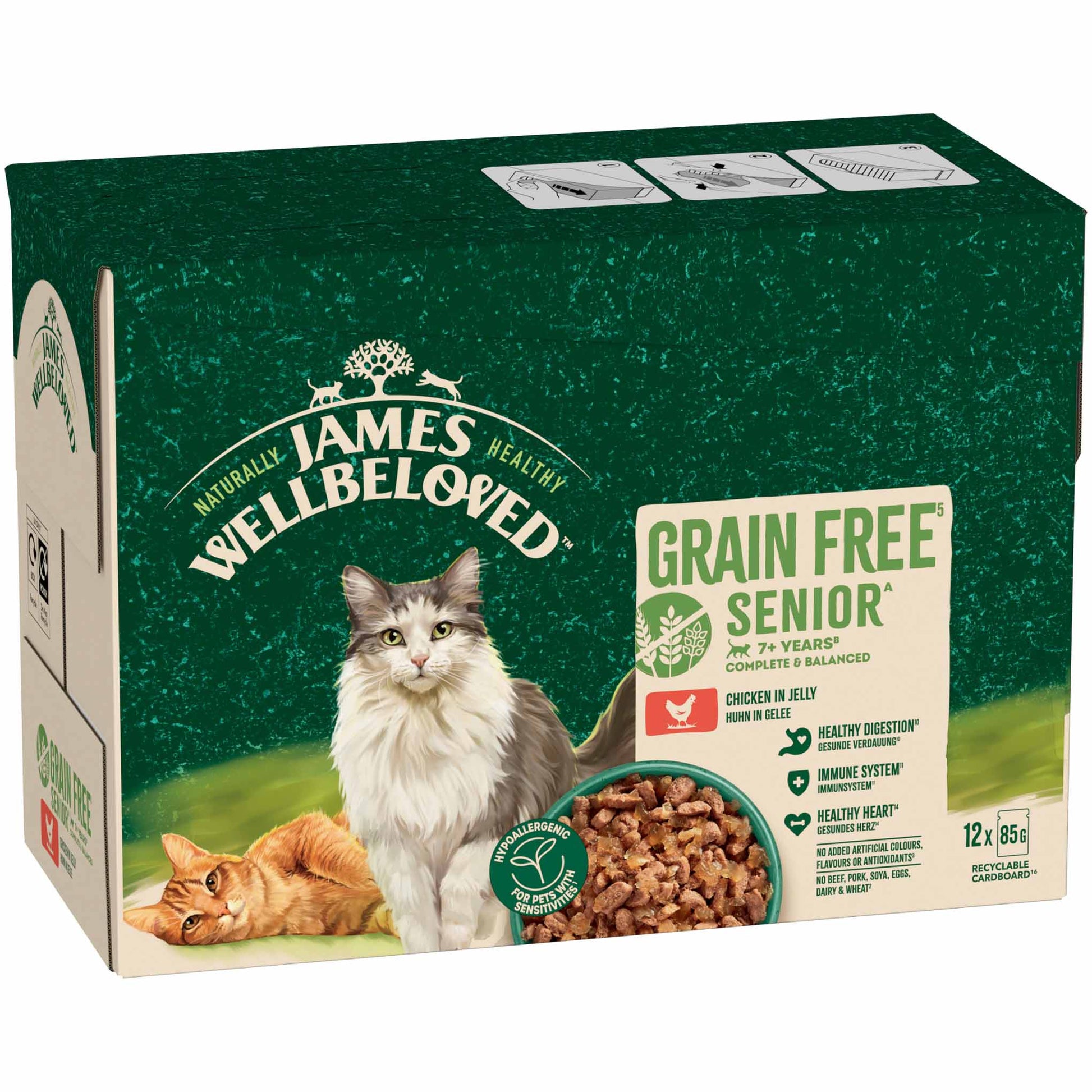 My cat enjoyed the adult version of James Wellbeloved Chicken in Jelly and now he's older he's moved on to the Senior version. It goes down a treat and I'm happy that it's grain free. Can recommend.