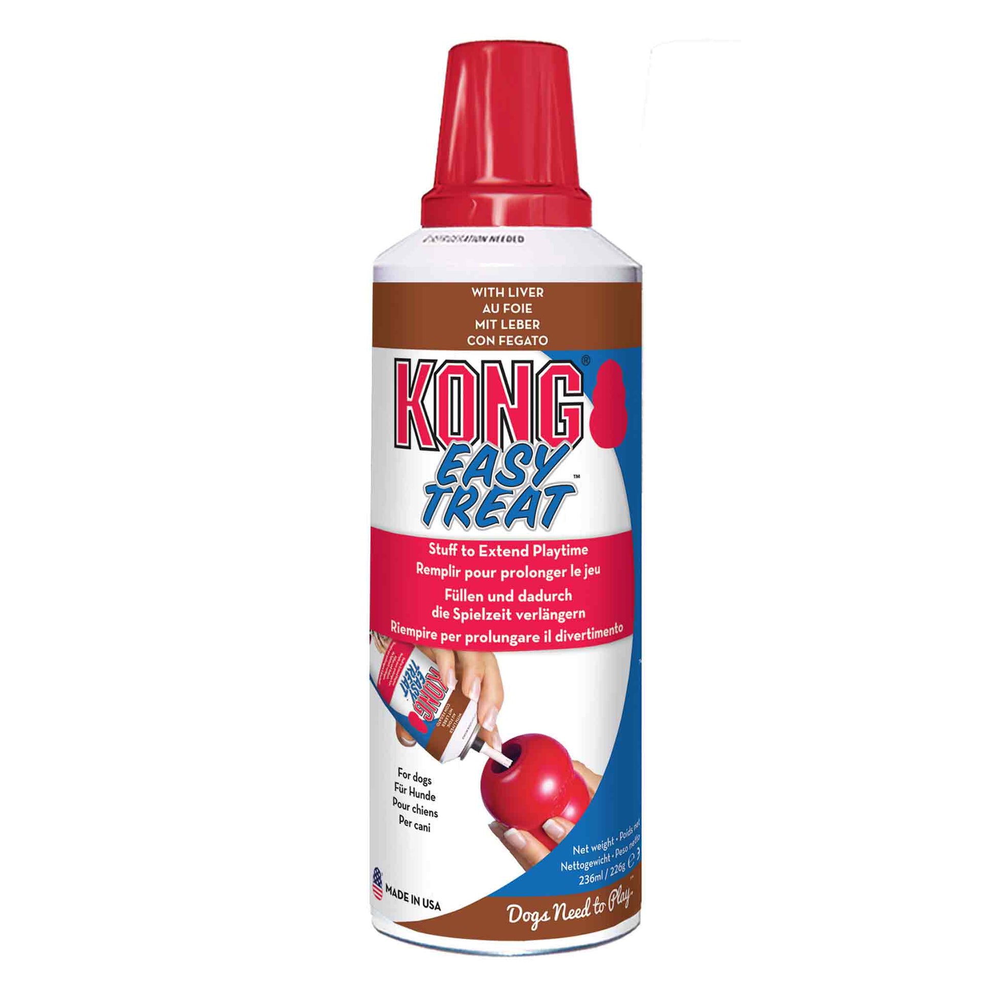 KONG Liver Easy Treat is a delicious treat that delights all types of dogs while providing an easy no-mess solution for pet parents. Made in the USA, this highly-digestible and trans-fat free treat is an enticingly delicious addition when added to a stuffed KONG. A uniquely designed nozzle easily controls the amount of KONG Easy Treat while also having the added benefit of a convenient, no mess stuffing solution. Want to make your stuffed KONG last longer? Freeze a stuffed KONG, topped with KONG Liver Easy Treat for a longer-lasting, mind occupying challenge. No Refrigeration required.