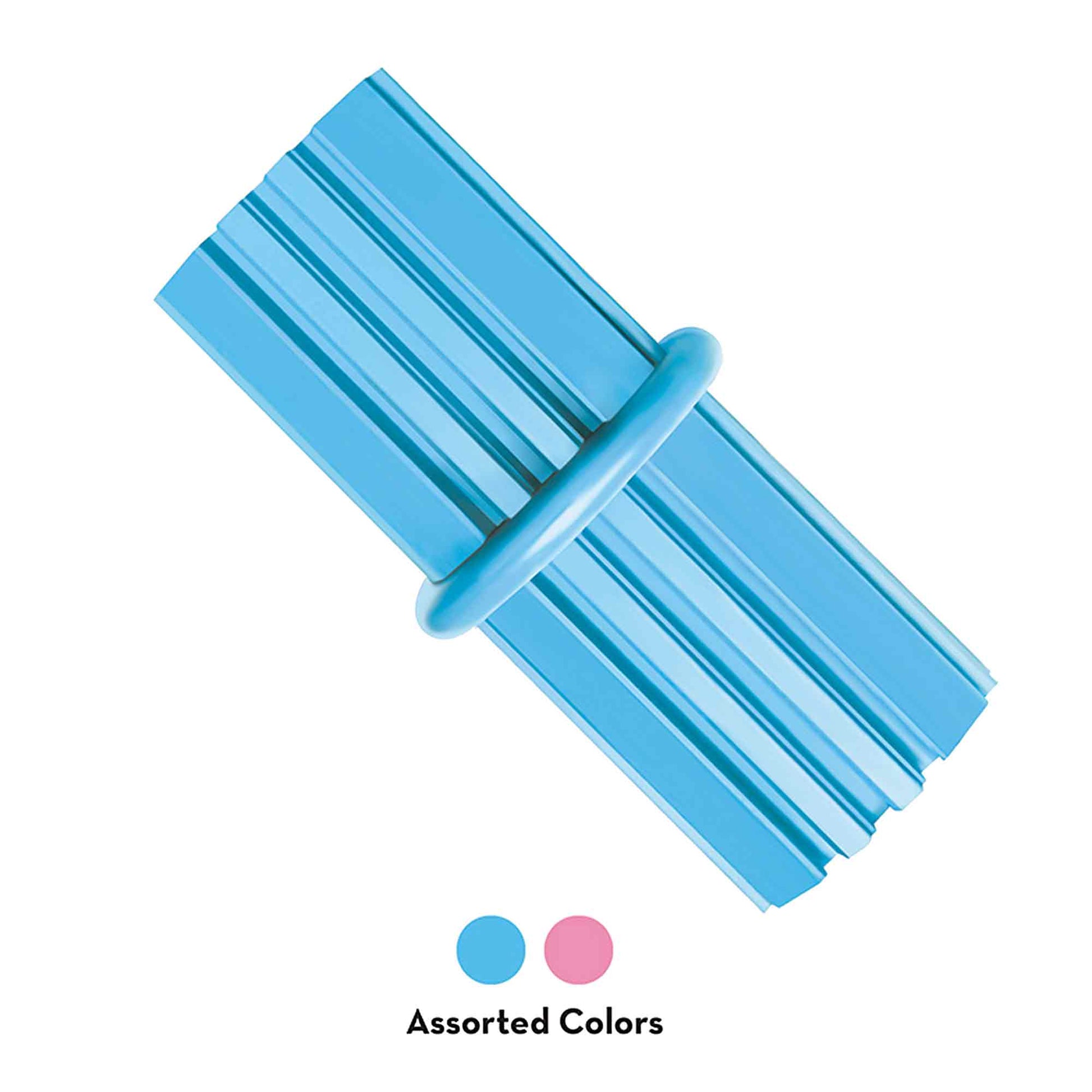 The KONG Puppy Teething Stick is made with unique KONG Classic puppy rubber. The ridges gently clean teeth and soothe sore gums when chewed. Fill them with Easy Treat or Peanut Butter to encourage long-lasting play sessions. Playing with the Puppy Teething Stick helps teach puppies appropriate chewing behavior. Use with puppies until they reach 9 months, then they can graduate to KONG Classic Rubber toys.