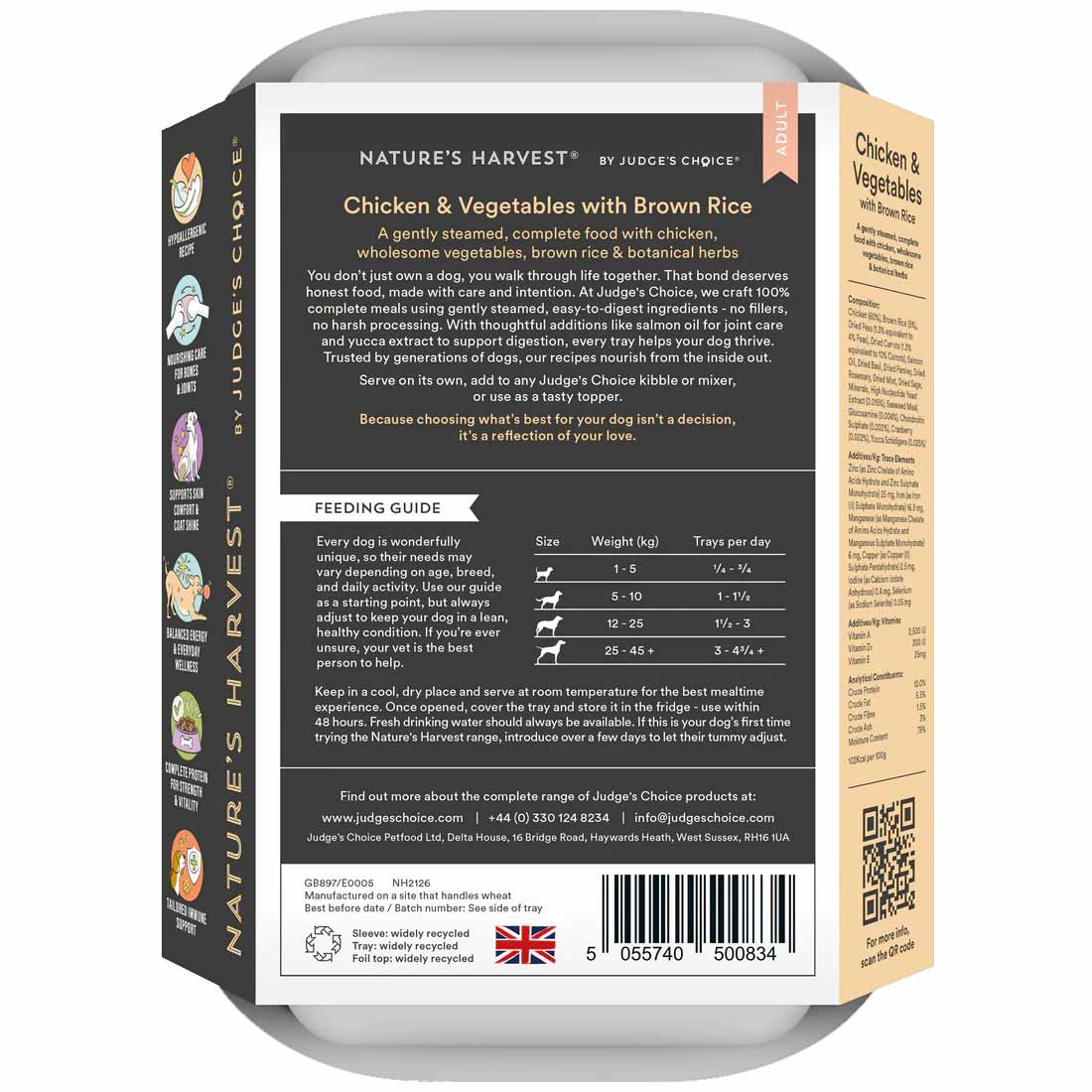 Nature’s Harvest Adult Wet Dog Food Trays are a selection of gently steamed meats or fish with brown rice and vegetables. Formulated to match a dog’s natural diet and using only the finest natural ingredients, each tray is a natural holistic, hypoallergenic and complete food that is especially ideal for dogs with a dietary sensitivity.