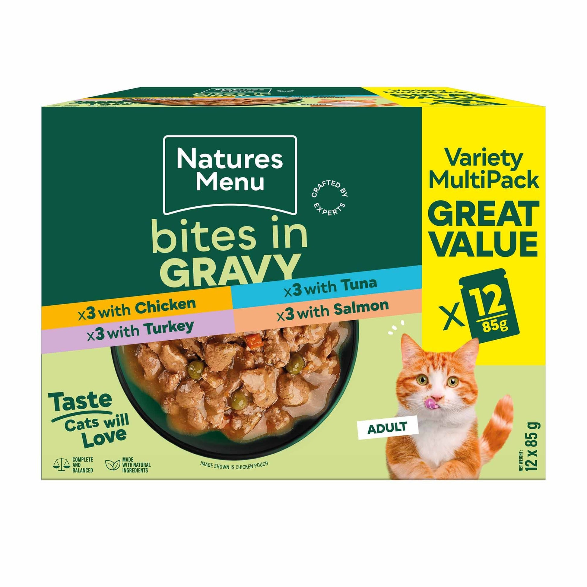 Natures Menu Bites in Gravy Adult Cat Wet Food - Multipack - 12x85g Pouches