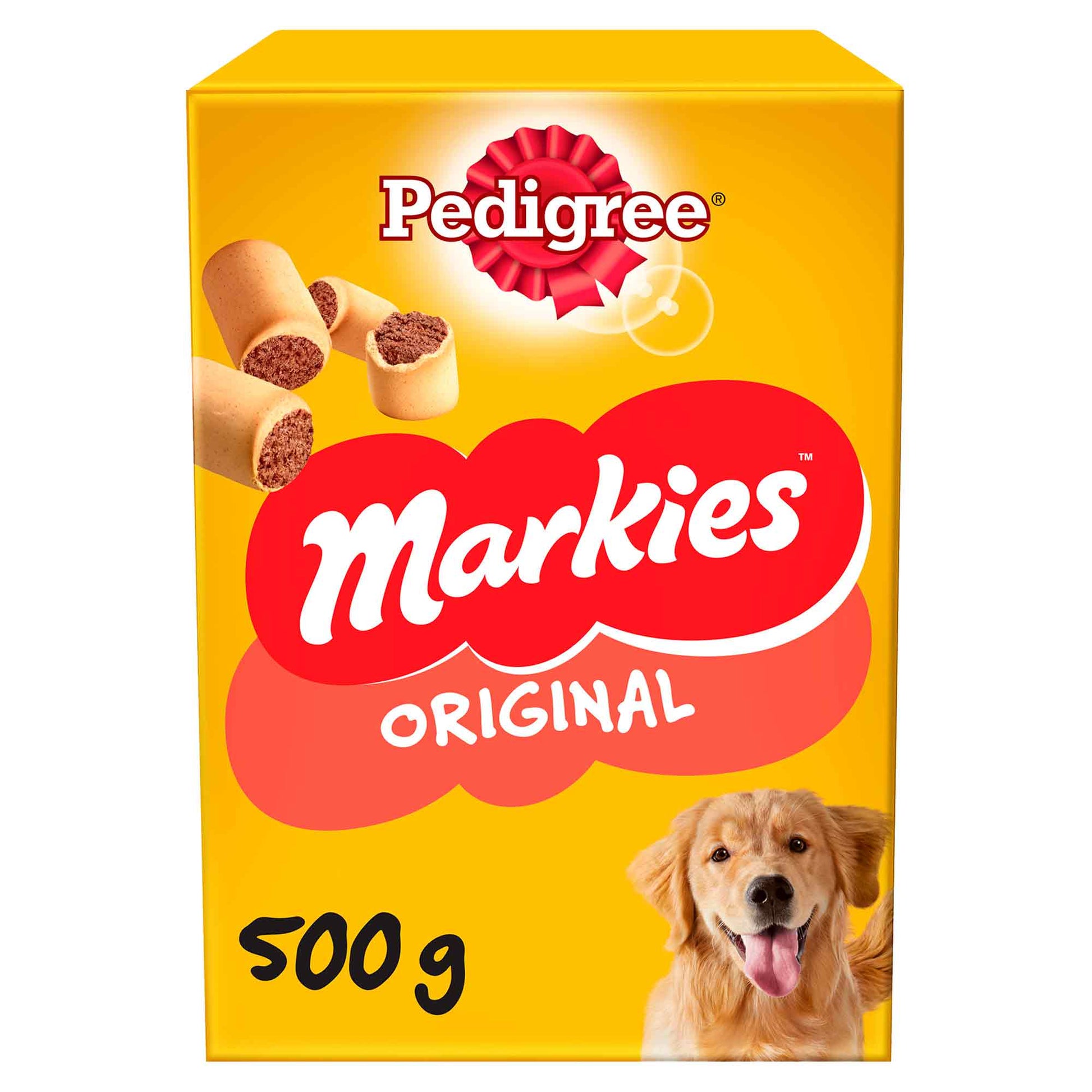Pedigree Markies Biscuits Dog Treats are crunchy dog biscuits filled with a tasty centre dogs adore. They're great to roll, throw and catch, which makes for delicious and fun playtimes.