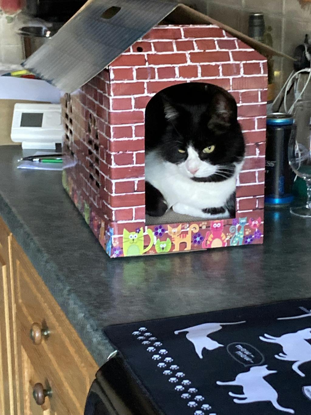 Your cat's desire to scratch comes as naturally as our desire to protect our stuff so the trick is to provide a better alternative to the defenceless sofa or chair. Cats just love cardboard and this cat scratching play house is perfect for clawing away at, thus preventing any claws from breaking or being ripped out.