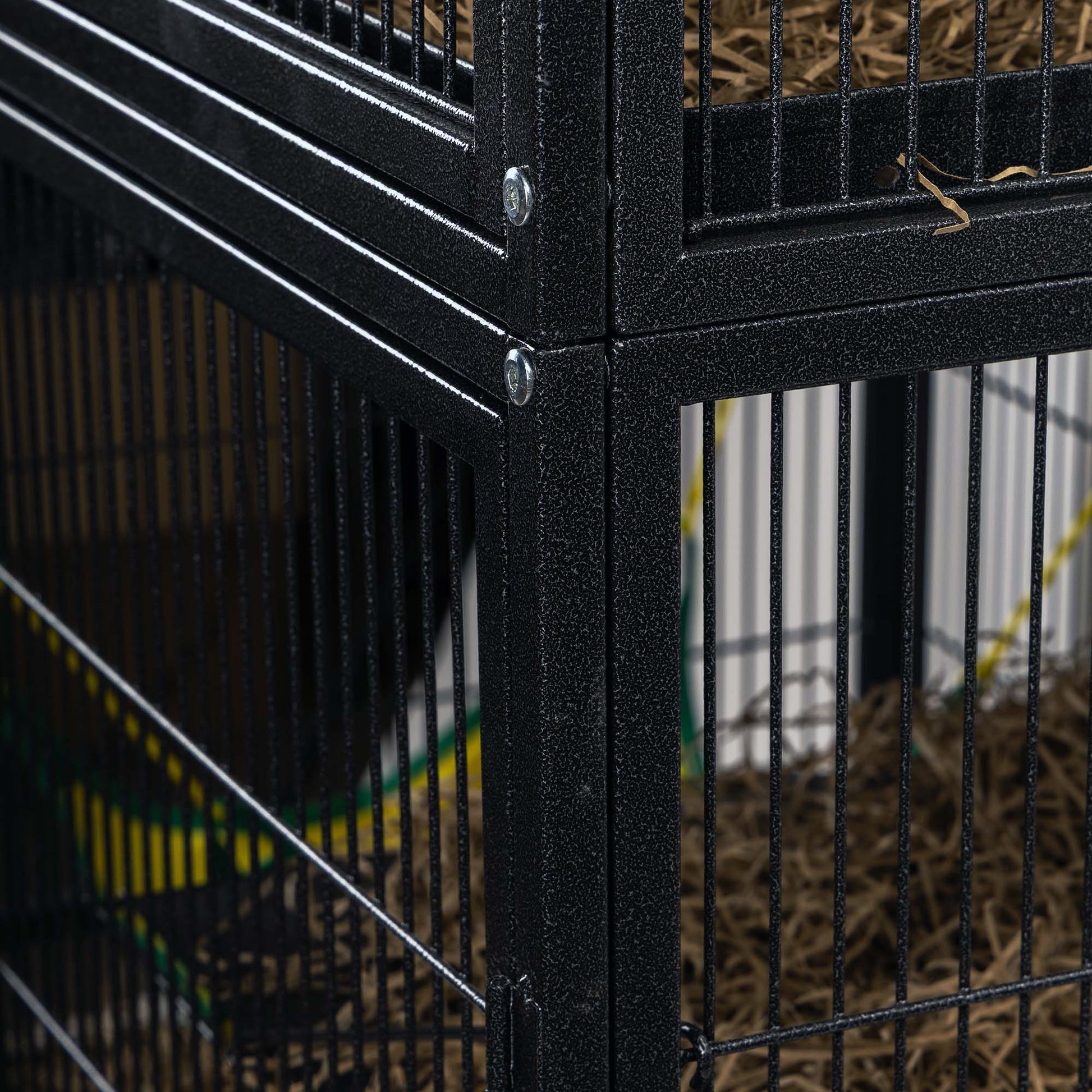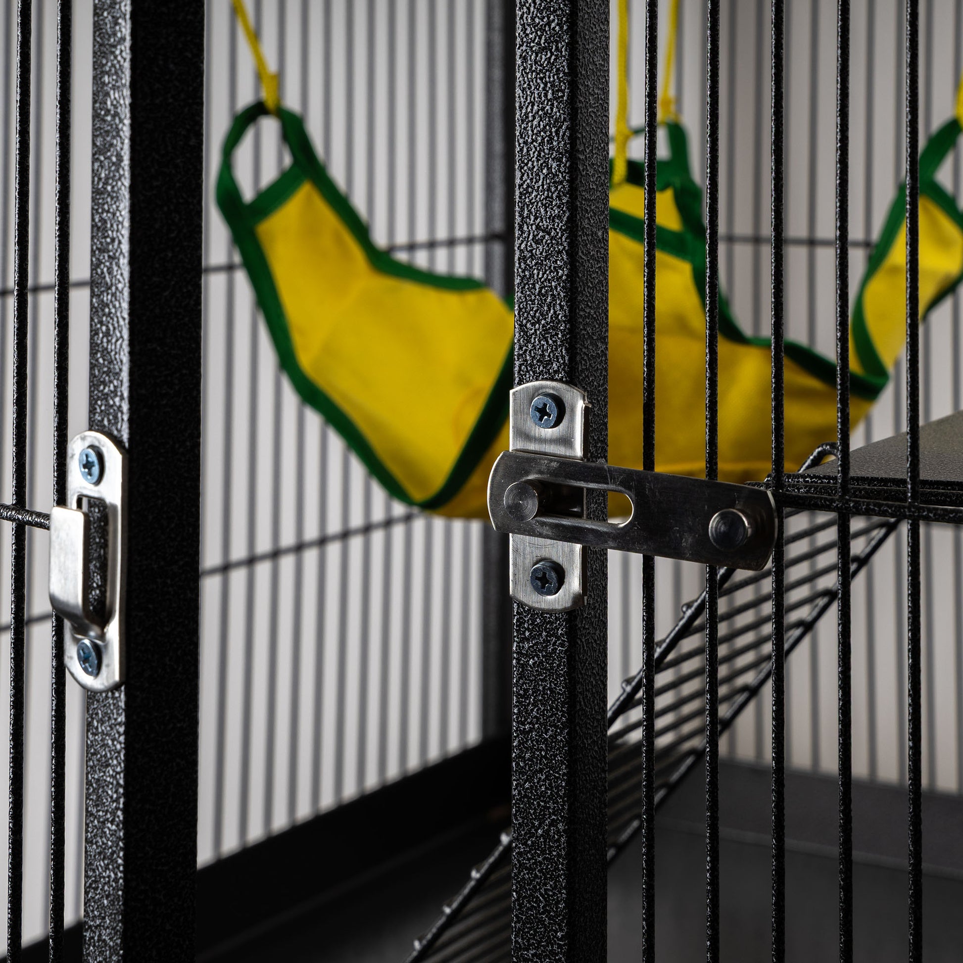 Constructed in metal, with a durable hammer paint finish, this cage comes complete with step by step instructions to make sure you are up and running in no time. There is plenty of room to hang your pet’s favourite items such as a hammocks, and secure door latches will prevent any escape bids. It also features litter guards around the perimeter of the cage to help reduce any falling substrate.
