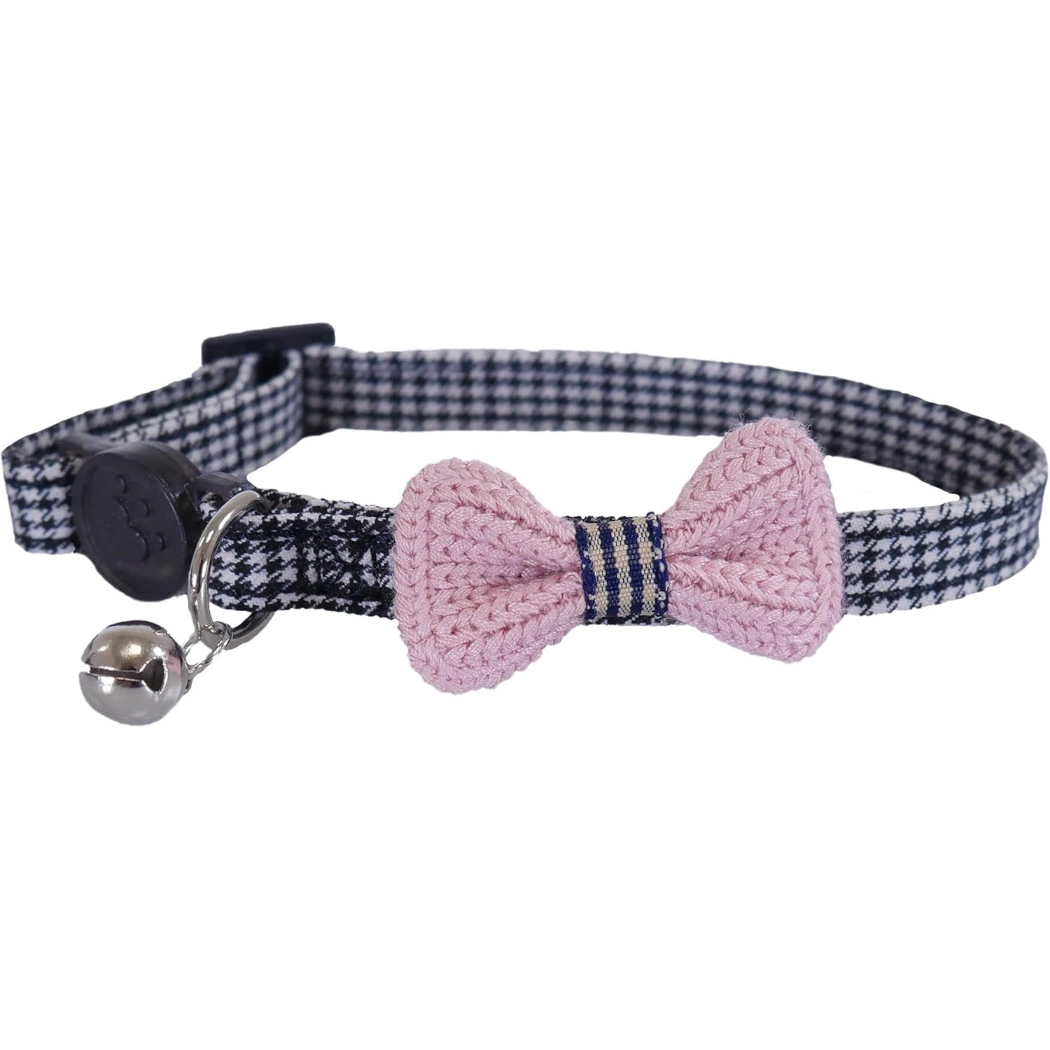- TRENDY DESIGN: Our Designer Pink Bow Dogtooth Cat Collar comes with an eye-catching black and white dogtooth print and a crochet pink bow, making your feline friend a fashionista