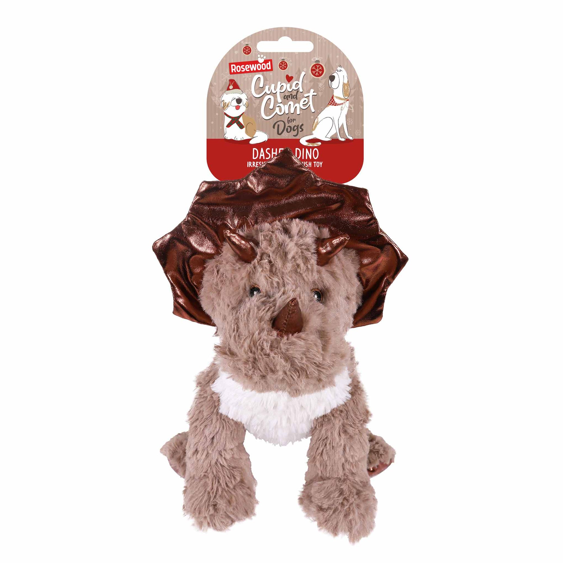 Rosewood Cupid & Comet Dasher Dino Festive Plush Dinosaur Dog Toy