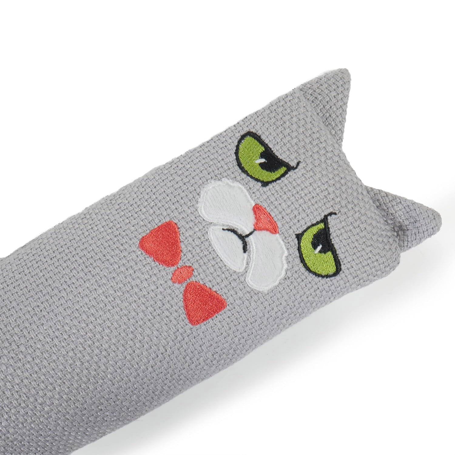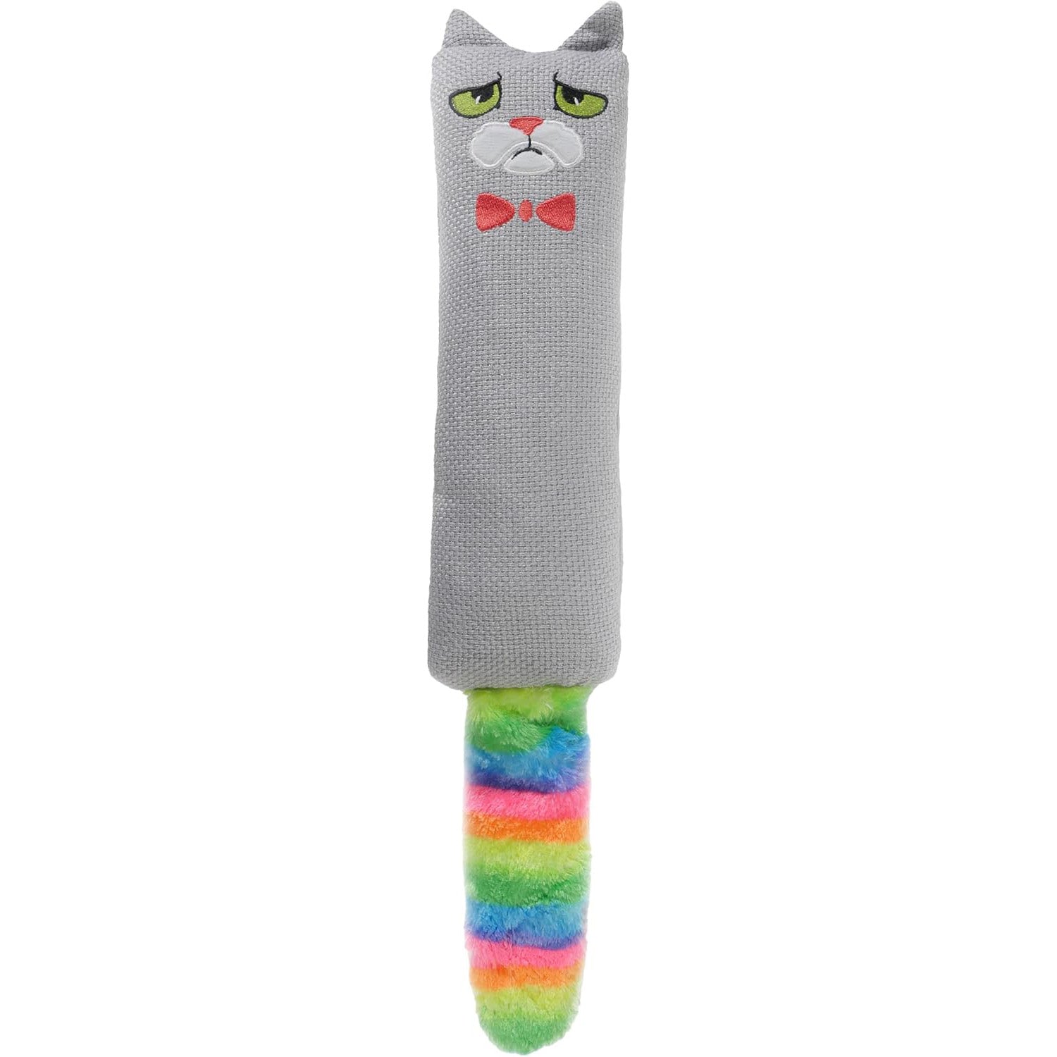 - EMBROIDERED MOODY MOGGY FACE: With an embroidered Moody Moggy face and bow tie, this cat kicker adds a fun, playful character to your cat's toy collection