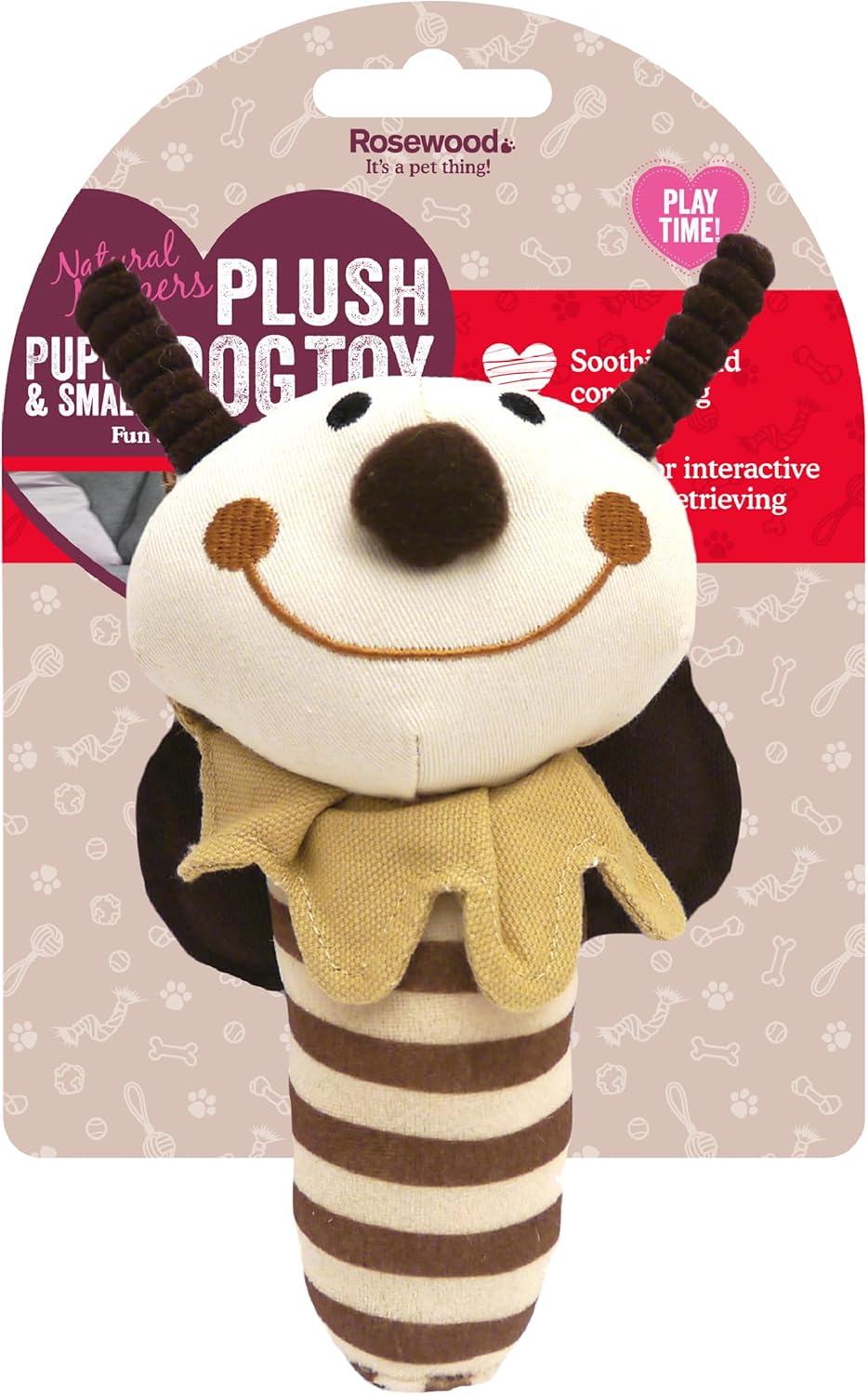 This Rosewood Natural Nippers Shake & Rattle Dog Toy has been designed to stimulate and comfort pups and small dogs. Made from soft plush material, it is ideal for chasing and retrieving games as well as a great toy to snuggle up with. It makes a gentle jingly, rattling sound when tossed around that your pet will love!