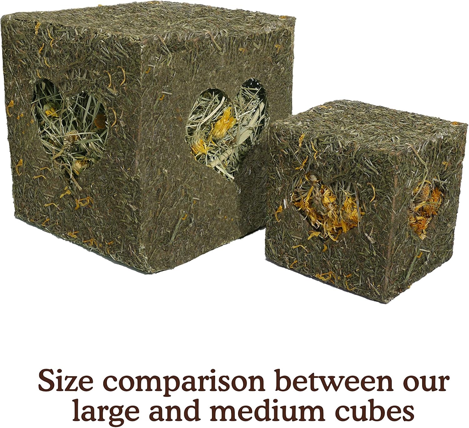 Rosewood I Love Hay Cube is a hay coated parchment box that is filled with delicious natural meadow hay and marigold blossoms.