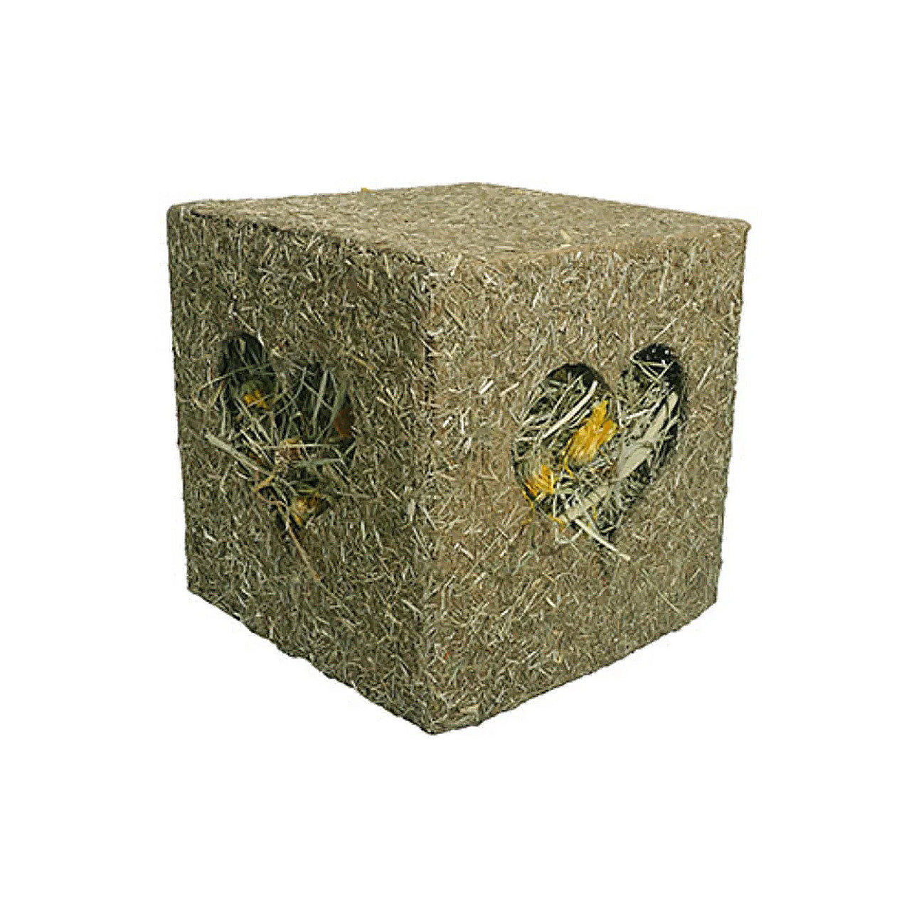 Made to give your pet a creative and fun challenge, the I Love Hay Cube is bursting with goodness that your pet can get to by working their way through the heart shaped windows that are designed to be nibbled and enlarged.