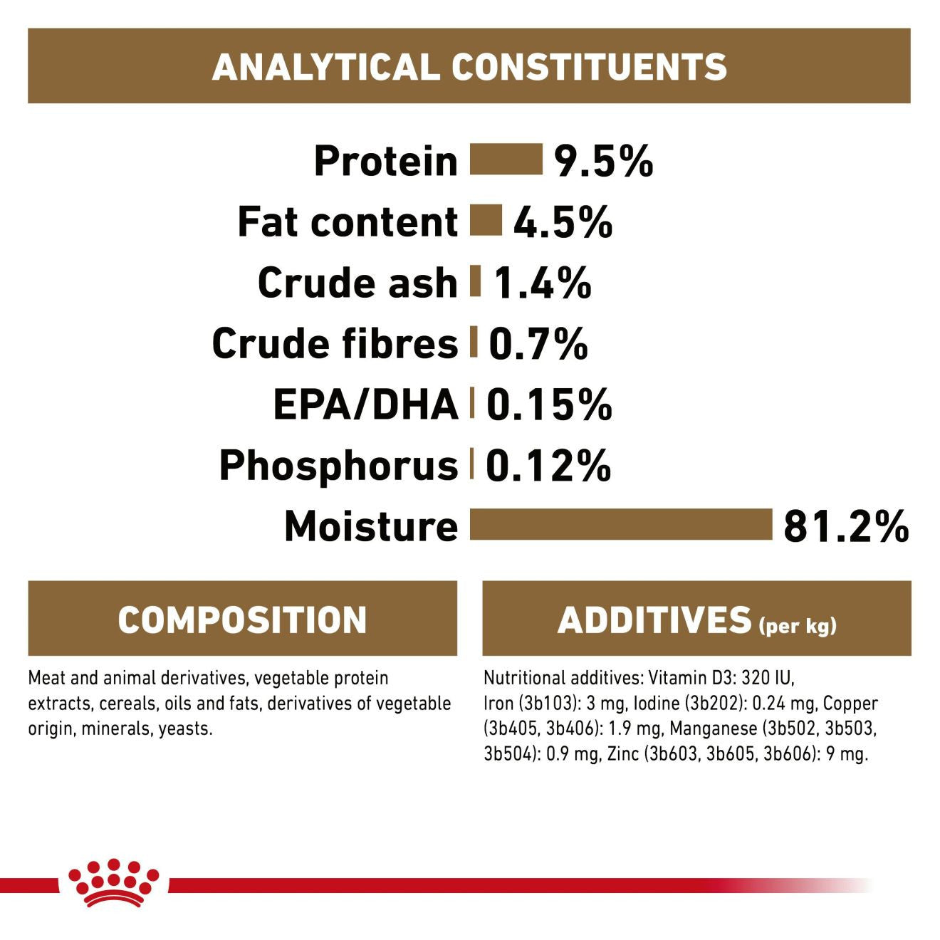ROYAL CANIN Ageing 12+ in Jelly is formulated to match the optimal Macro Nutritional Profile that is instinctively preferred by ageing cats like yours. The joint health of senior cats is paramount to their ability to partake in physical activity and maintain good overall health – which is why they typically need higher levels of nutritional support.
