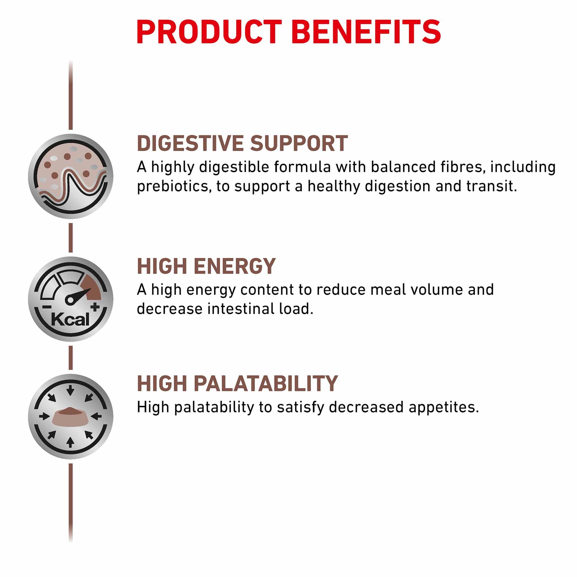 - High Energy - The high energy content in ROYAL CANIN® Gastrointestinal to reduce the volume of your dog’s meal and decrease their intestinal load, which makes digestion much easier for your dog whilst also meeting their general nutritional needs.